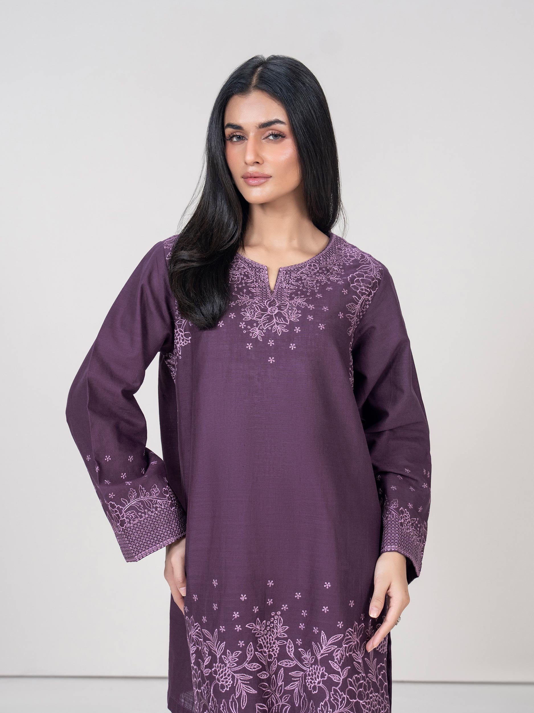 2 Piece Slub Khaddar Suit- Embroidered (Pret)