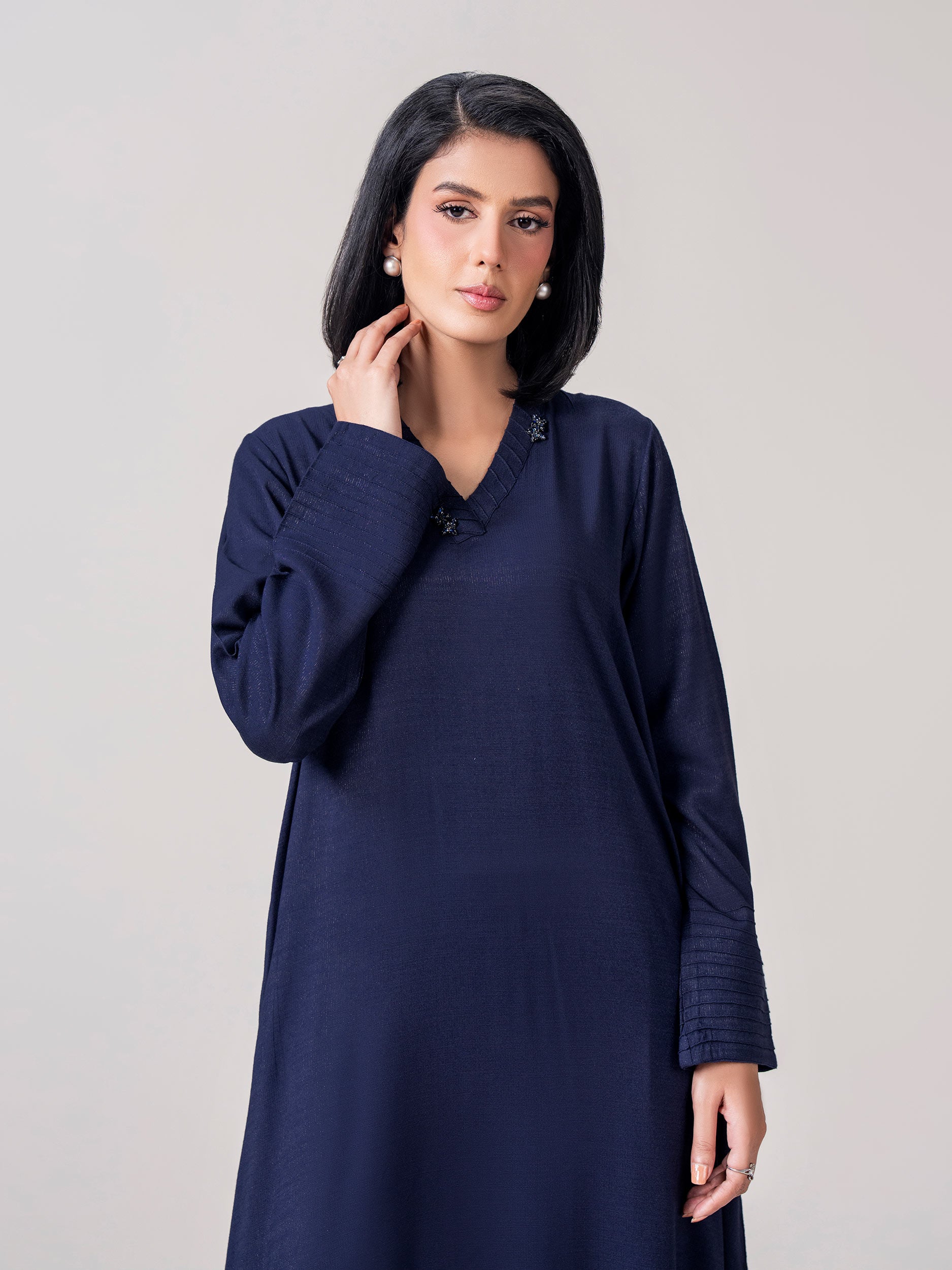 - Solid shirt with an embellished neckline and embroidered sleeves