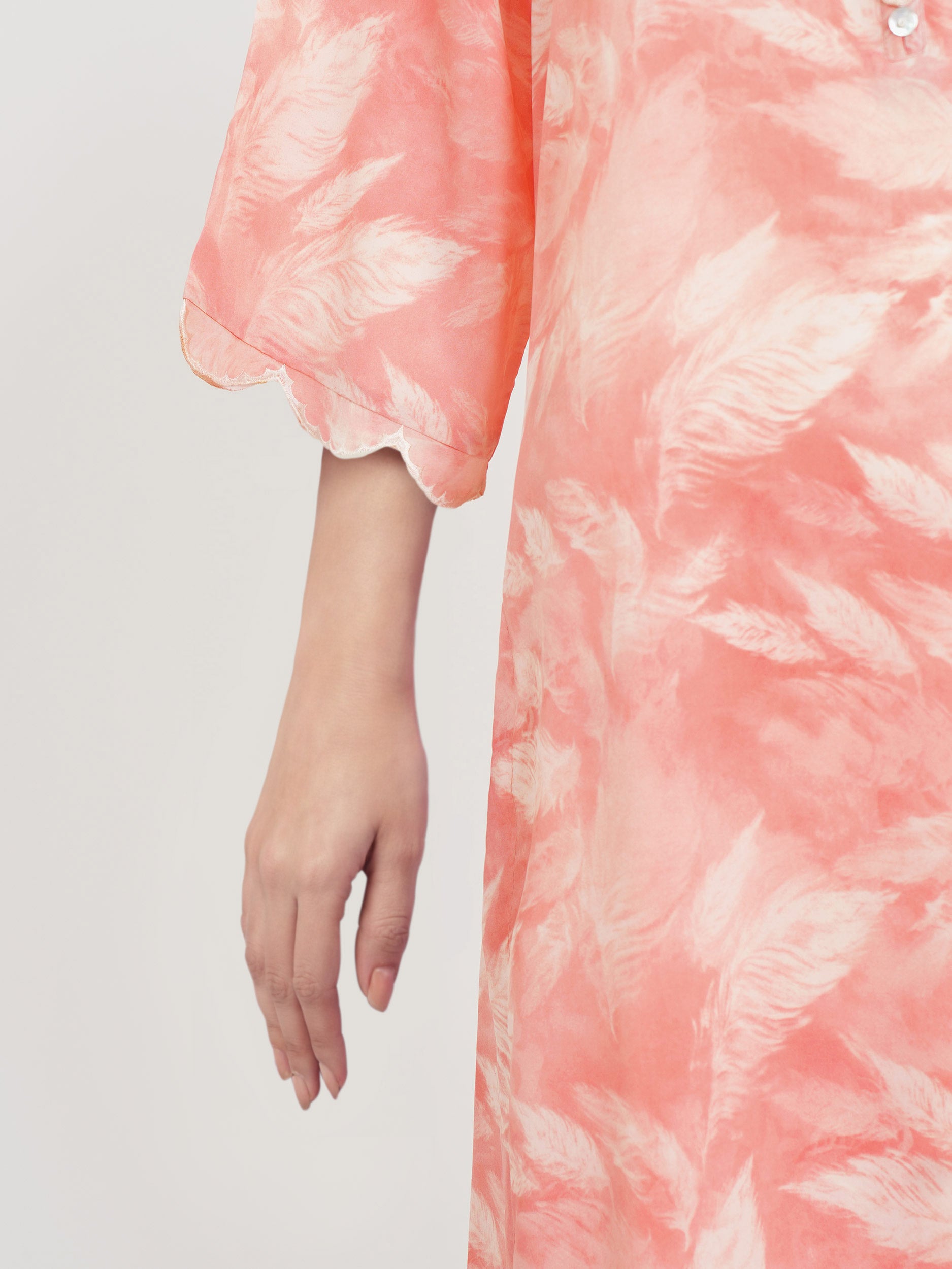 Printed shirt with embellished button detailed placket and embroidered scalloped detailing