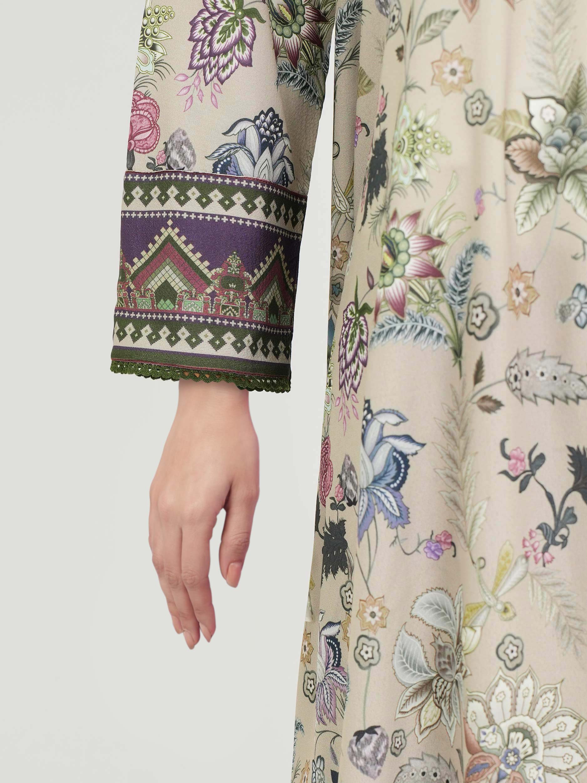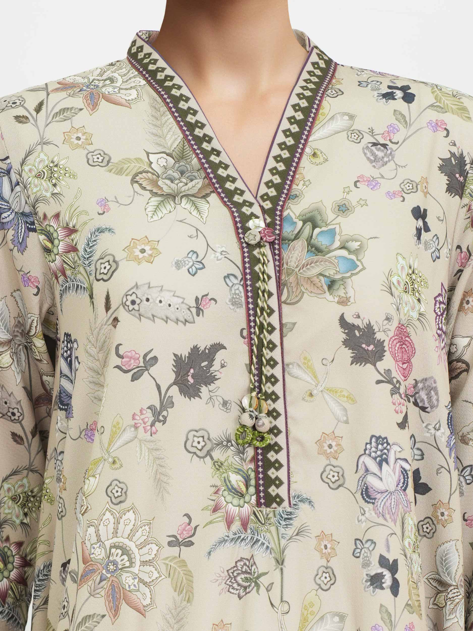 - Printed shirt with button and tassel detail V-neckline