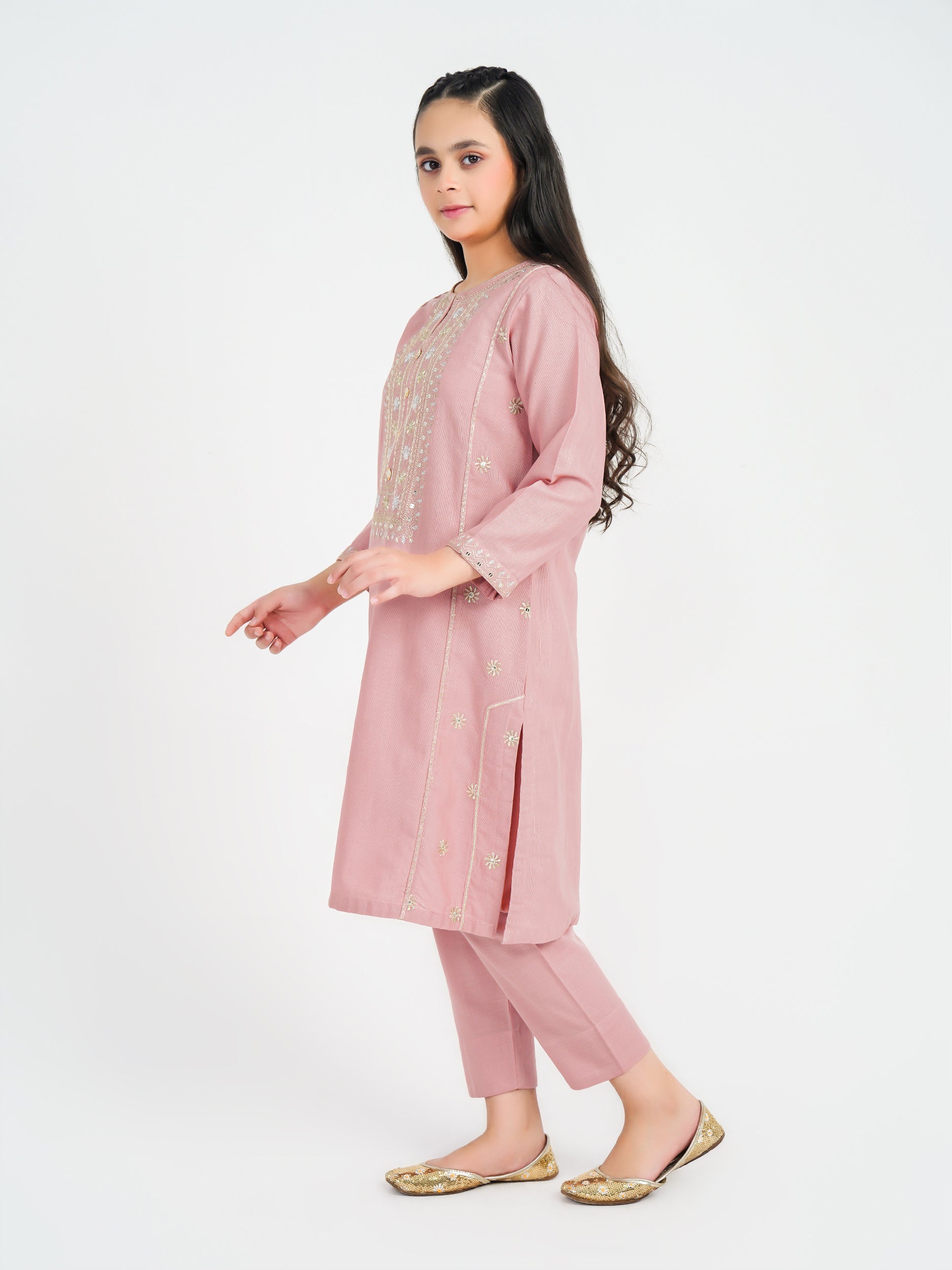 - Dyed shirt with embroidery and gotta detailing on neckline