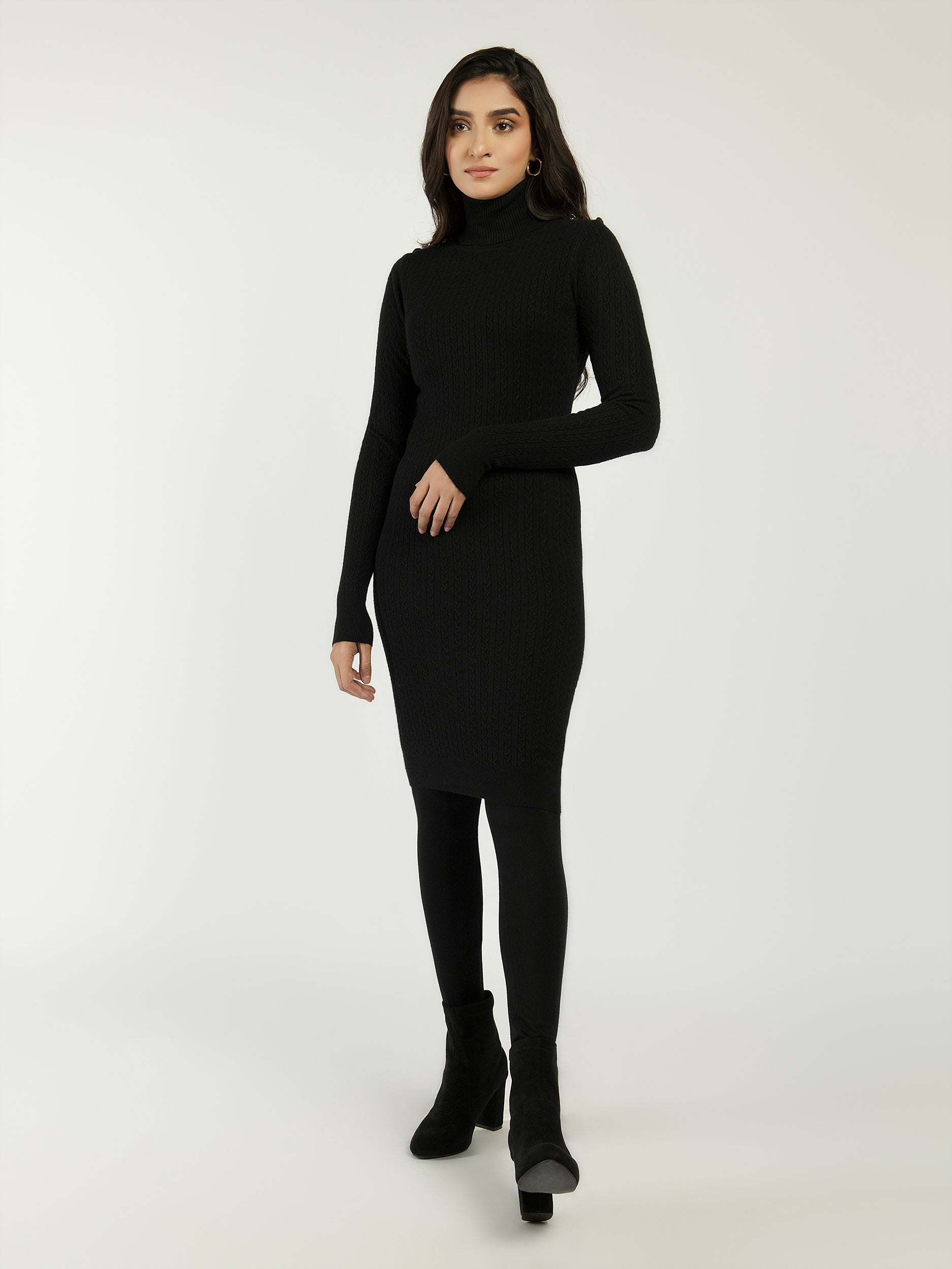 Knitted High Neck Sweater Dress