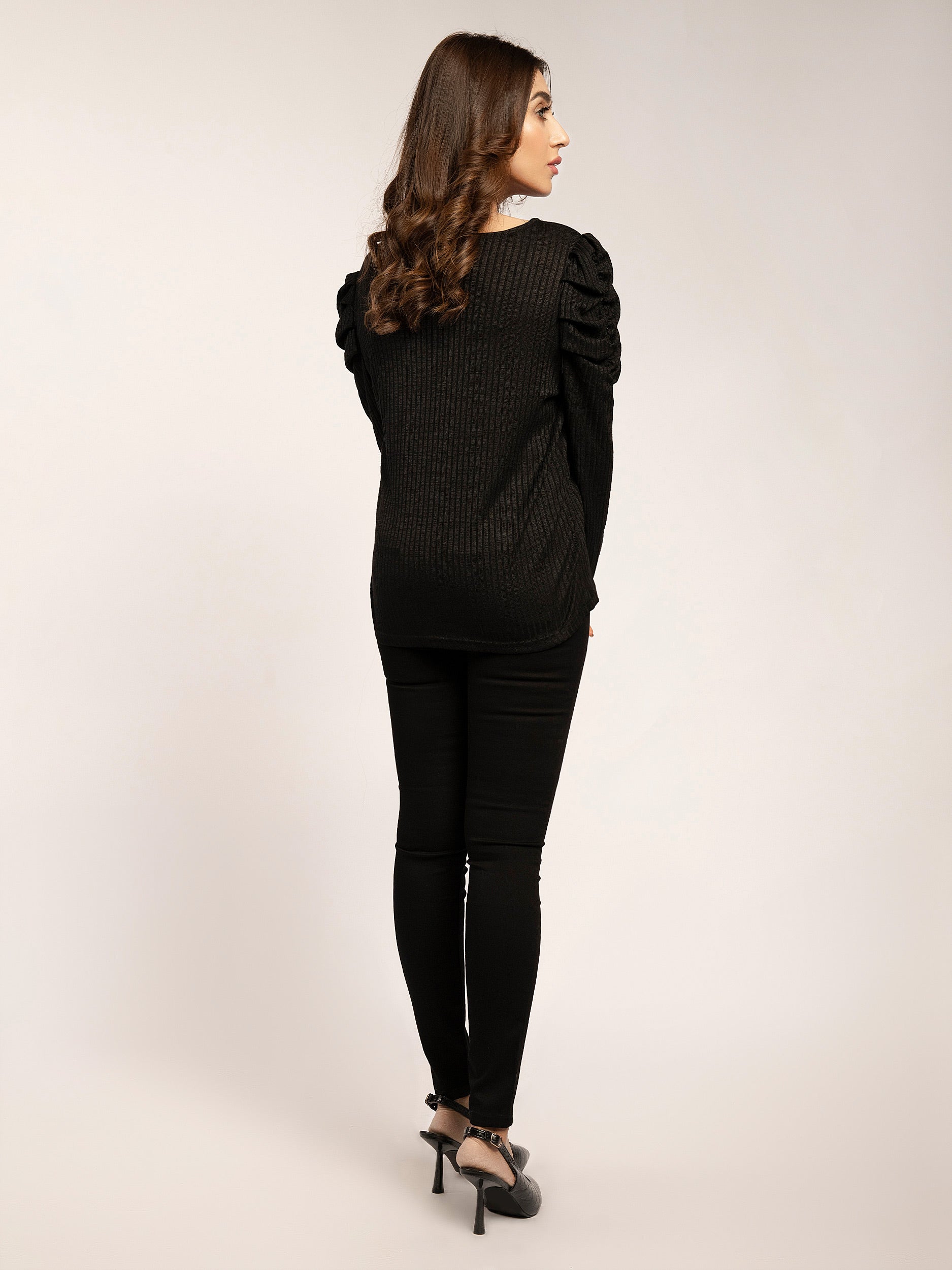 - Puffed pleated shoulders