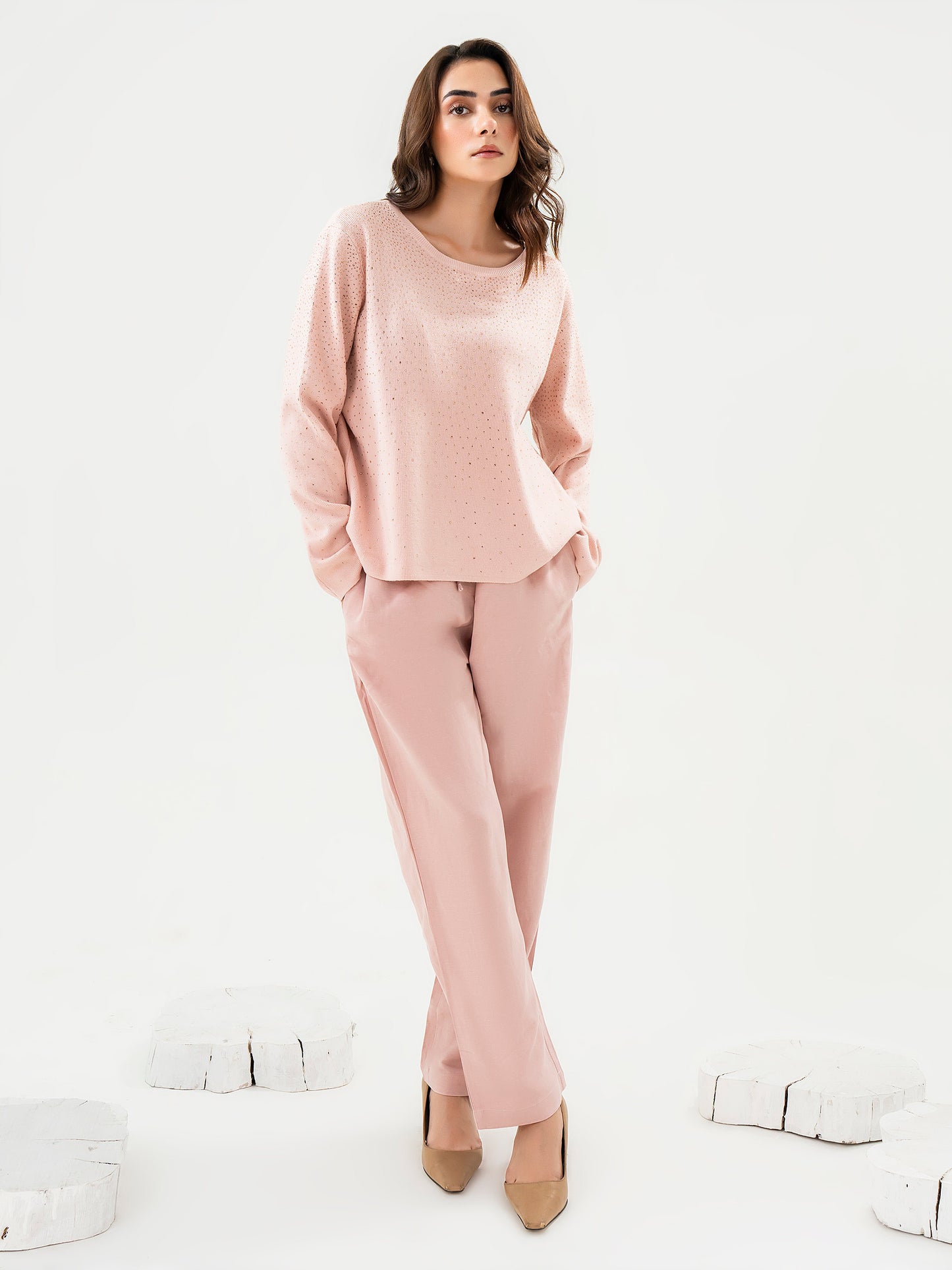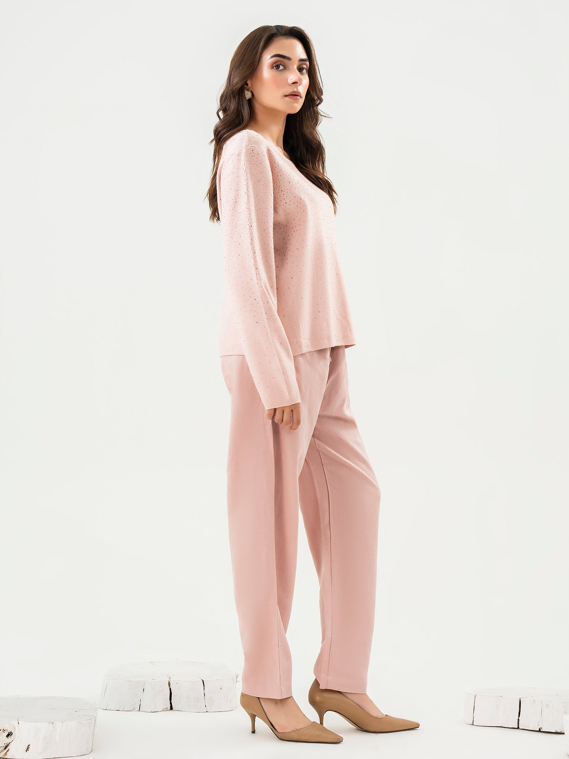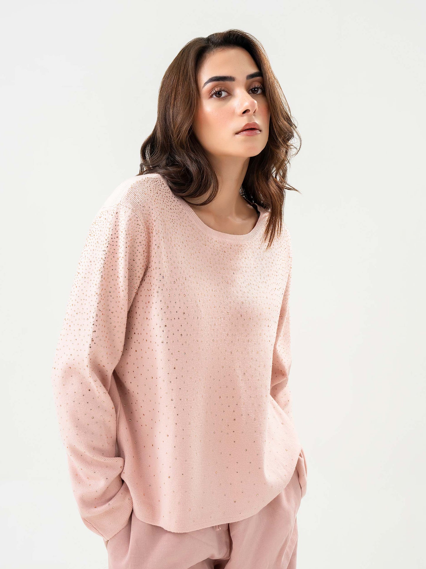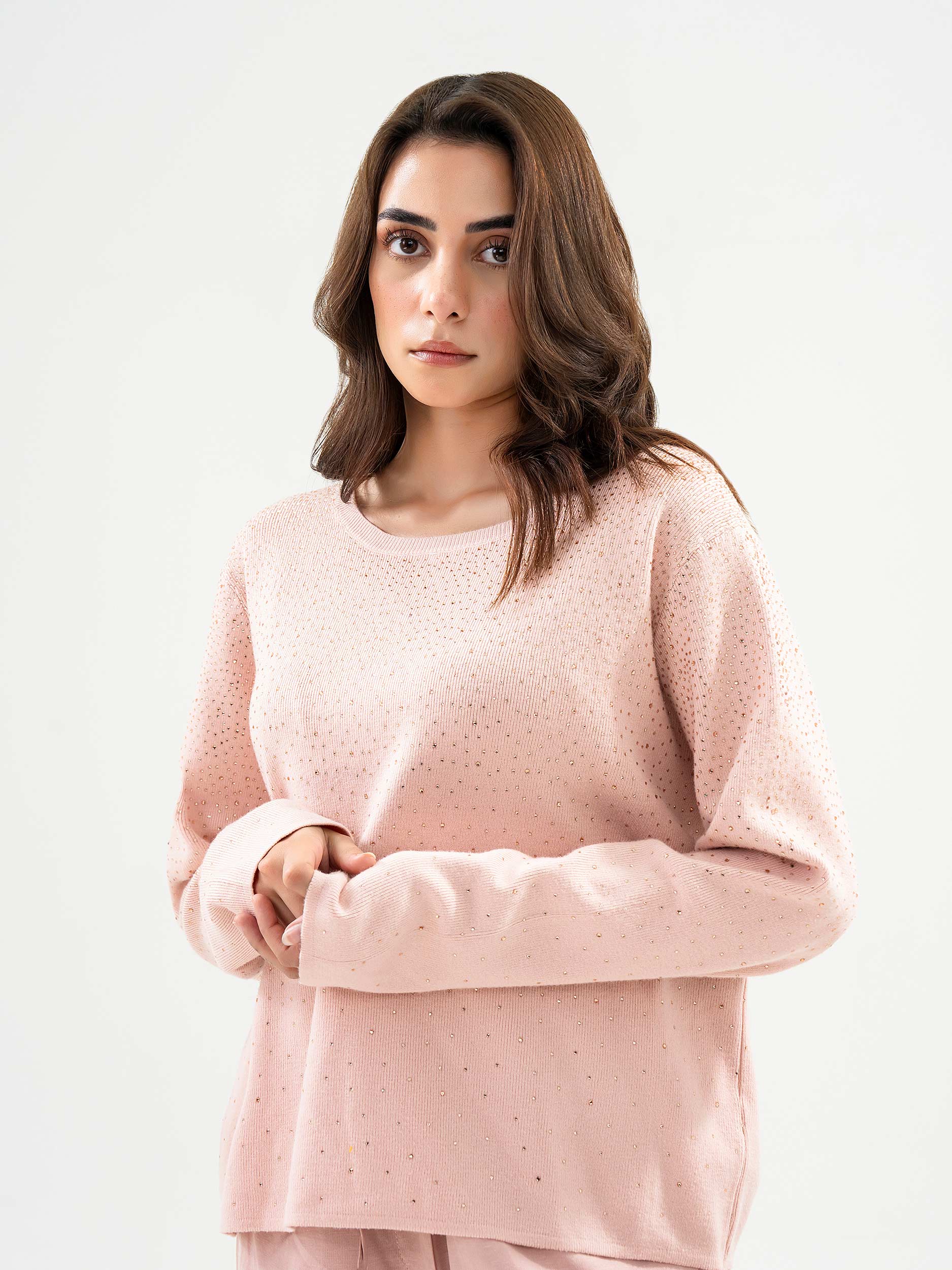 - Dyed rhinestone embellished sweater