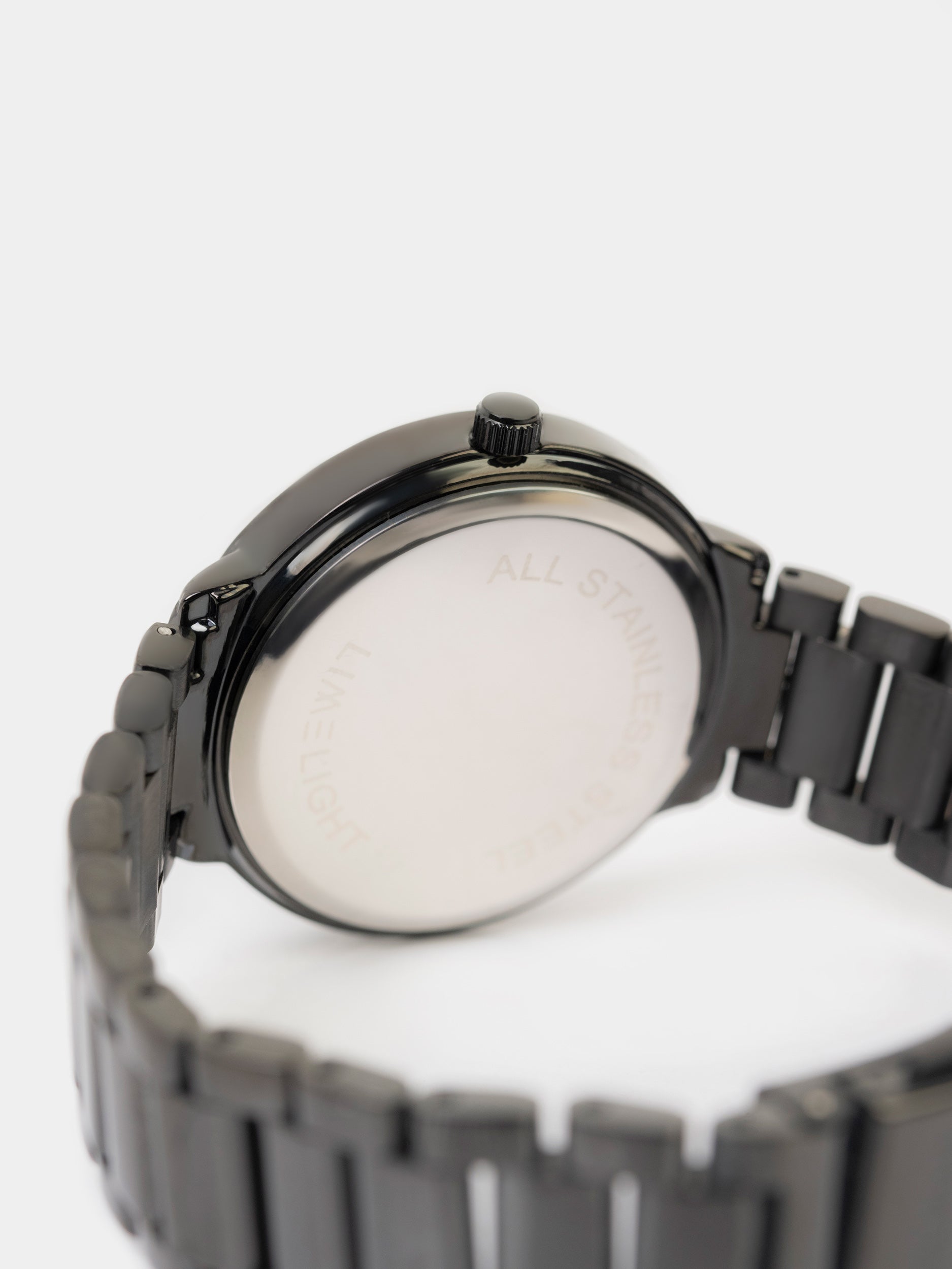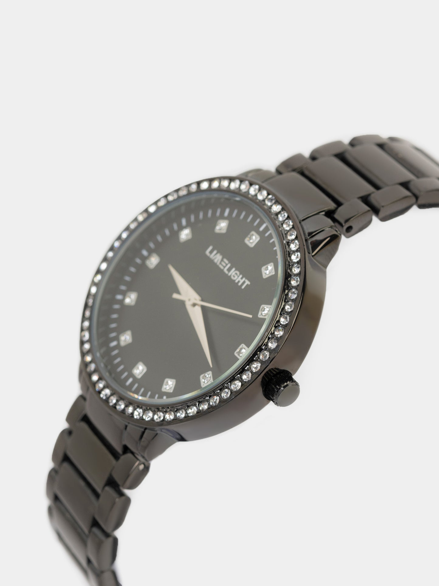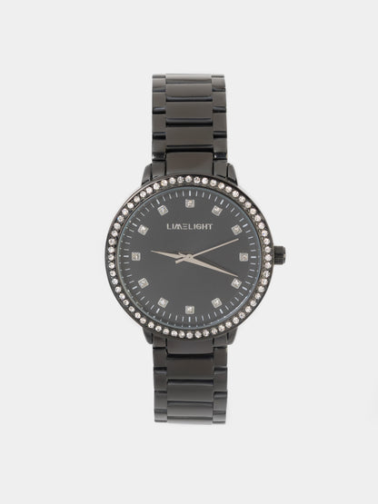 - Crystal-studded watch with metallic case