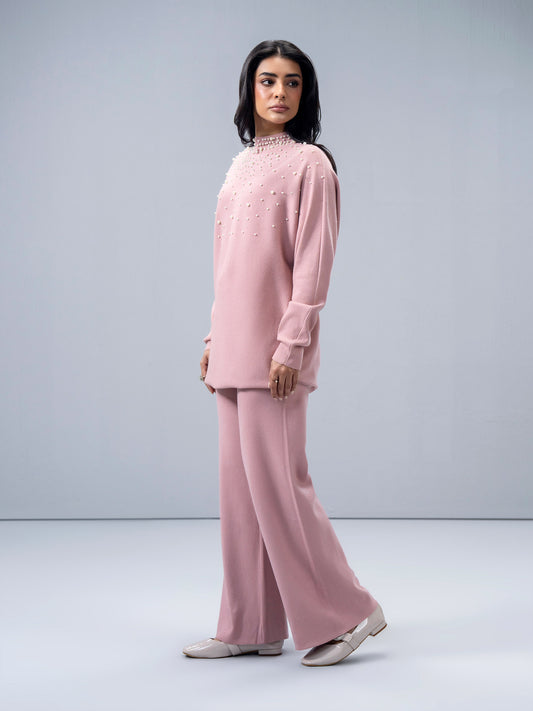 - Pearl embellished round neck knitted top