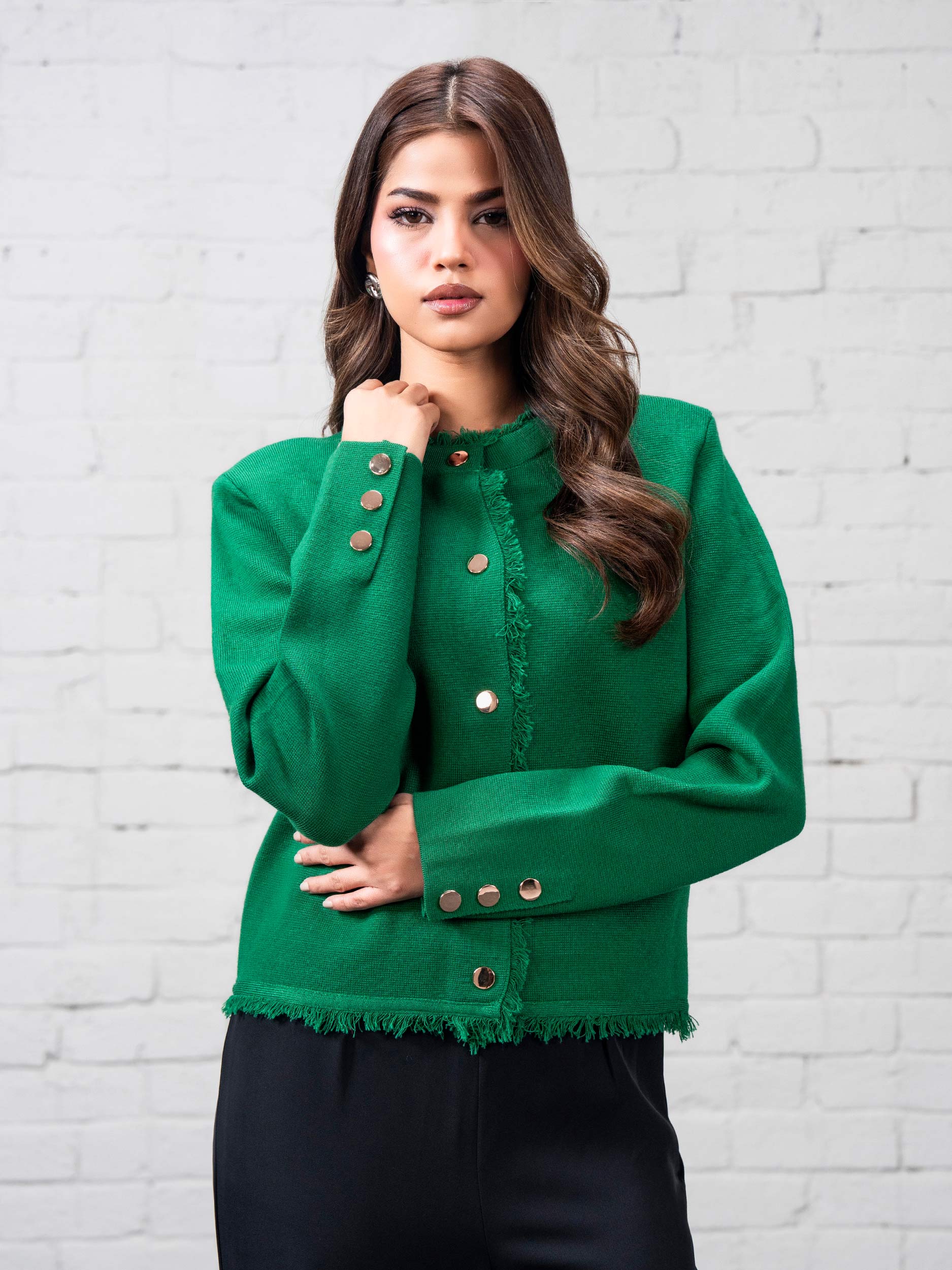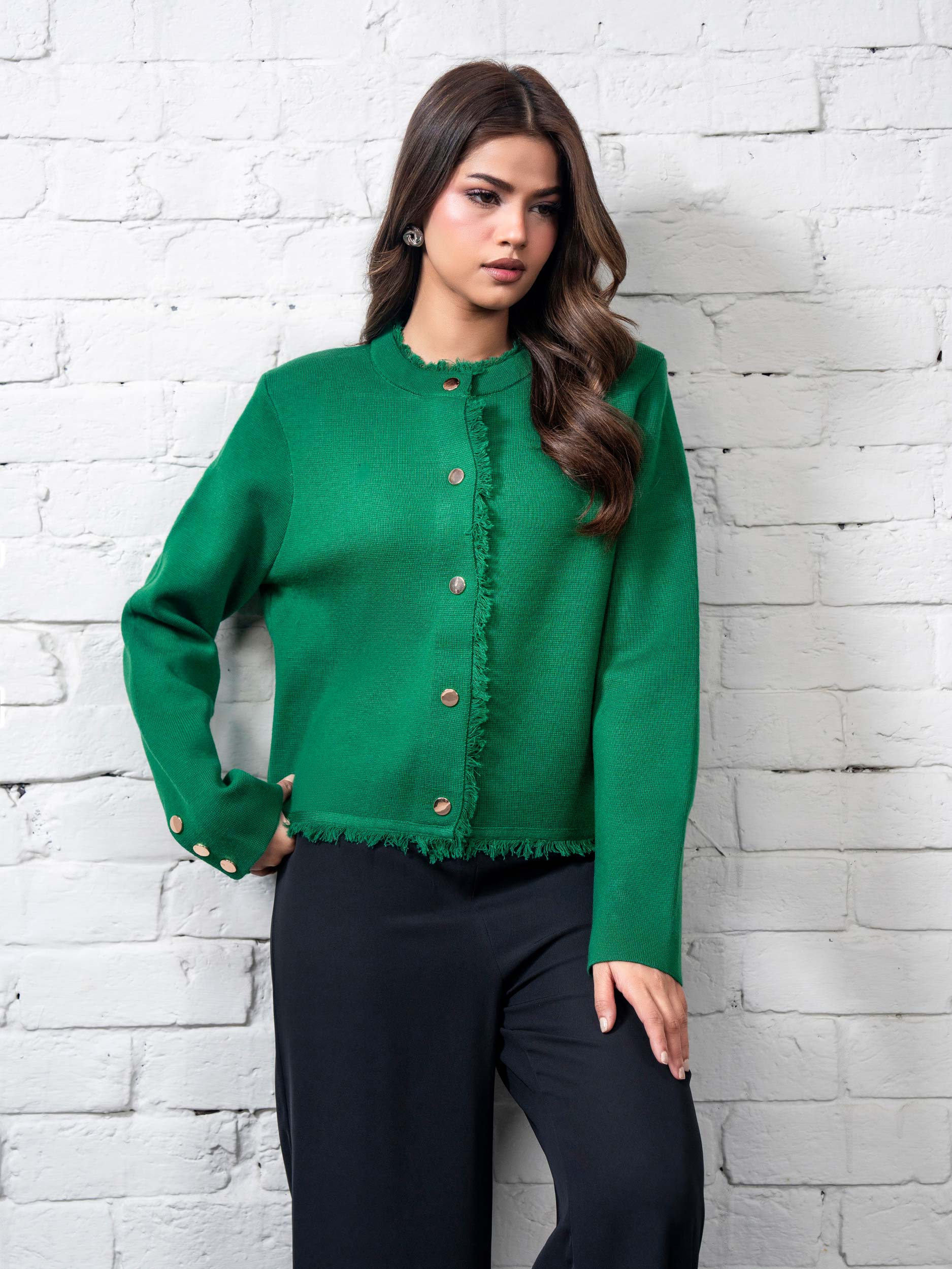 Button-down Jacket with a round neckline and rough edge detailing