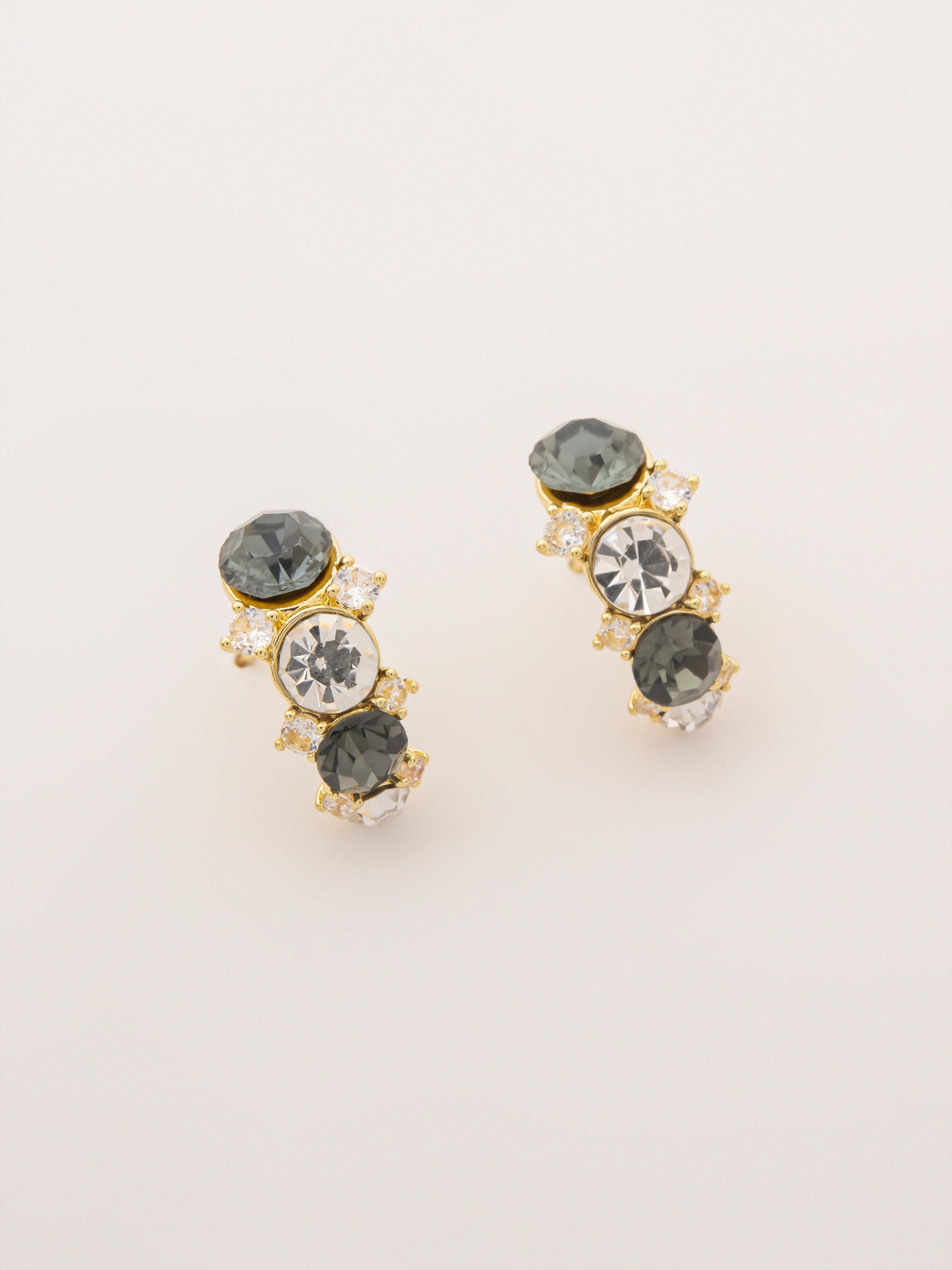 - Linear stud earrings with grey and clear stones, push-back closure