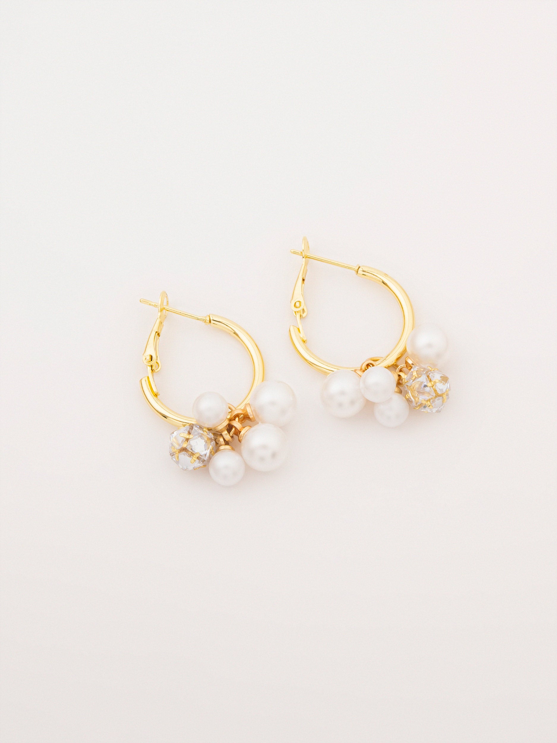 - Mini hoops with pearl and rhinestone drops