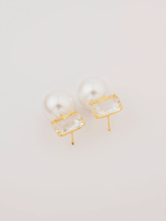 - Crystal studs with a pearl