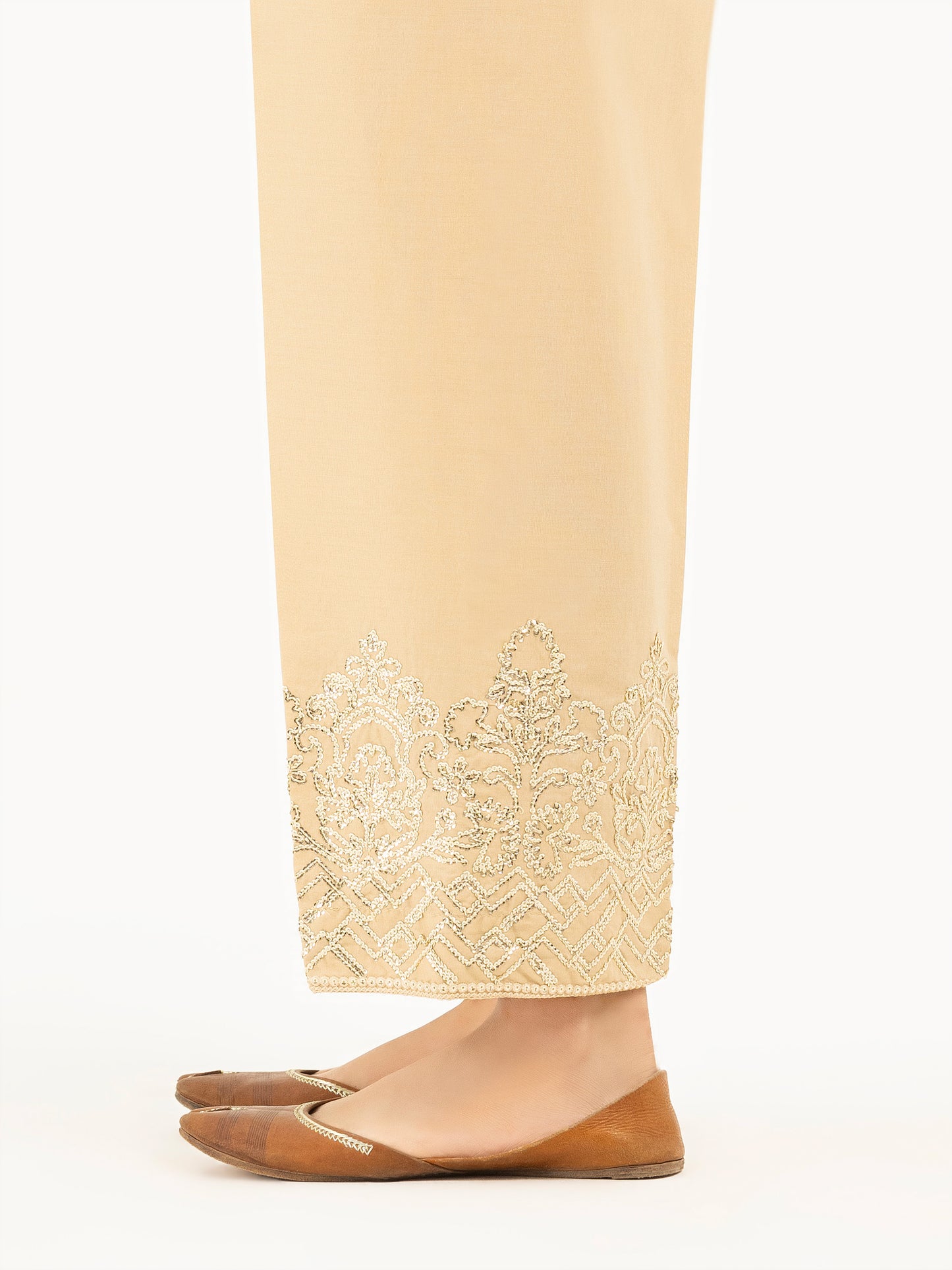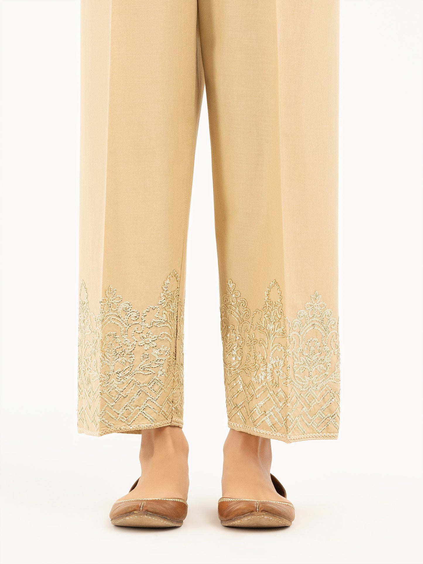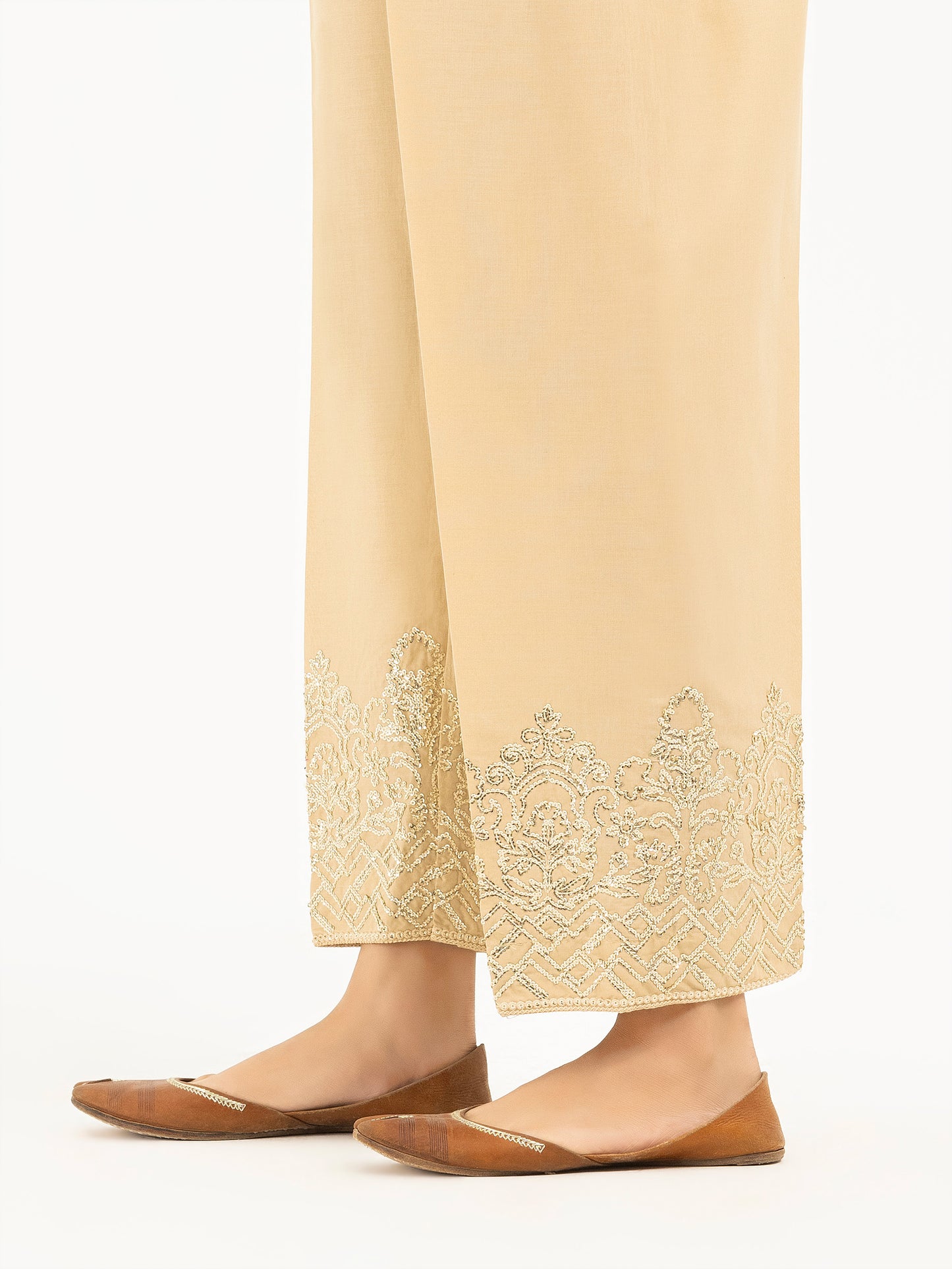 - Dyed wide-leg trouser with sequins embroidery on the hem