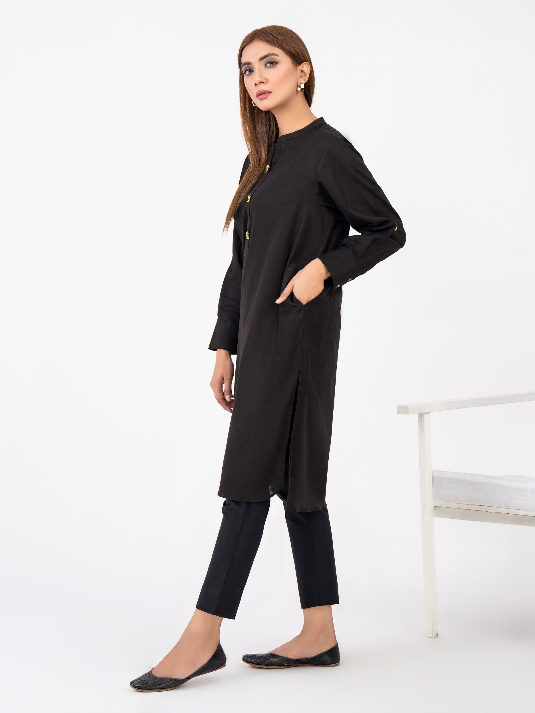 - Dyed shirt with cuff sleeves and tassel detailing on neckline