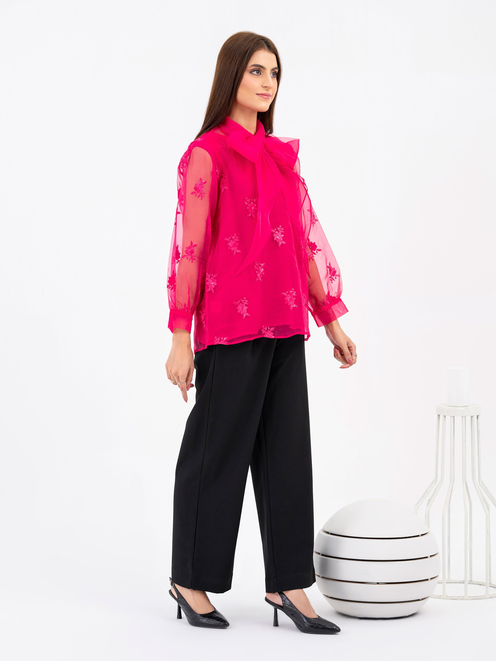 Organza Top With Inner-Embroidered