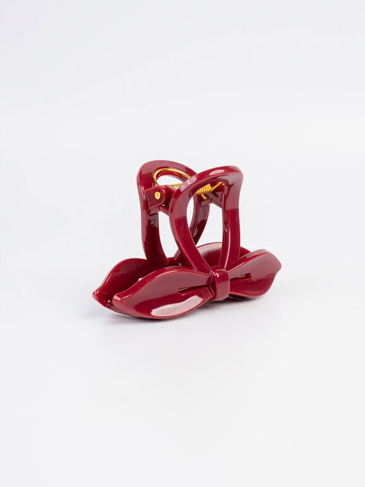 - Glossy bow-shaped interlock claw clip