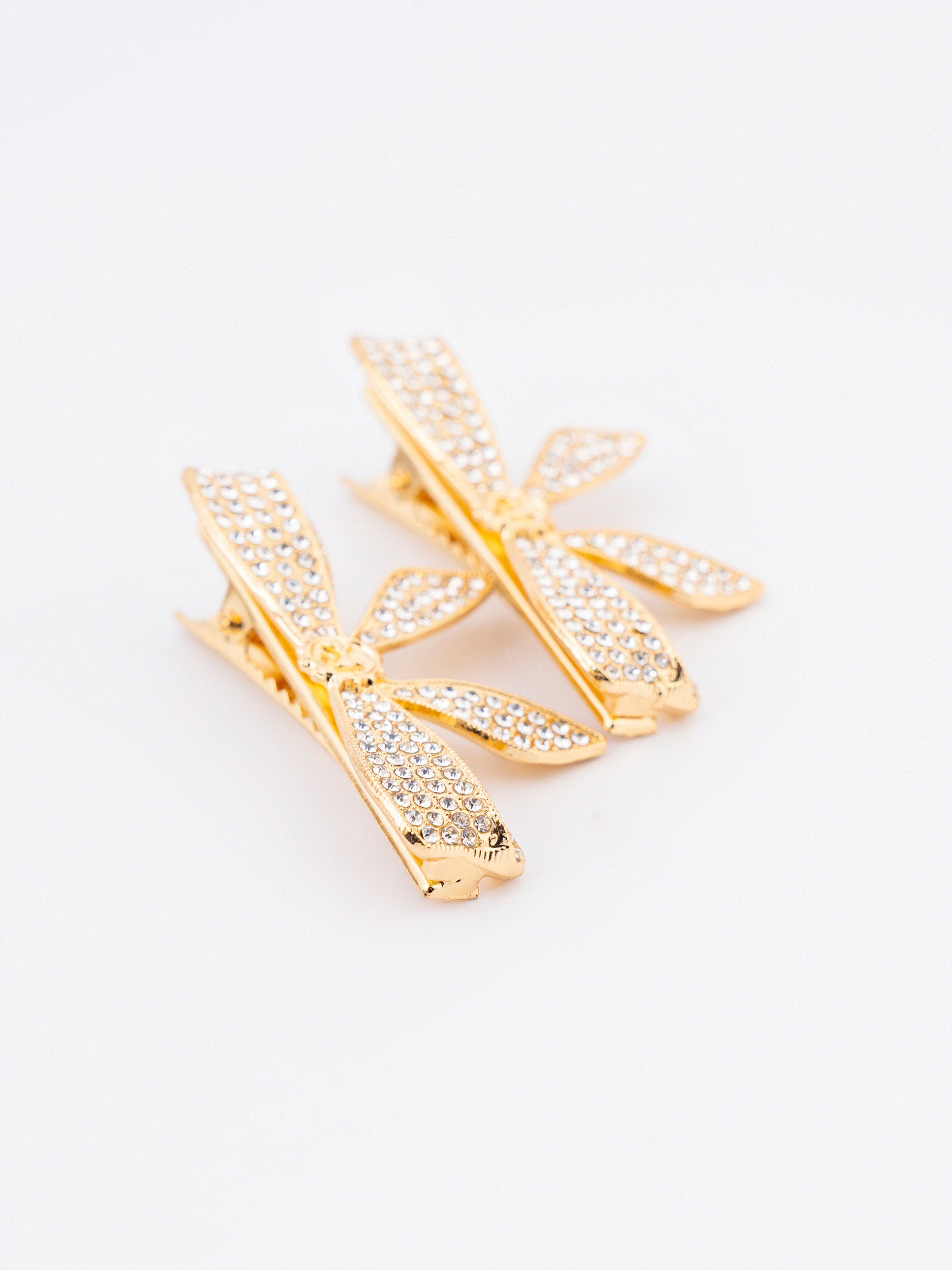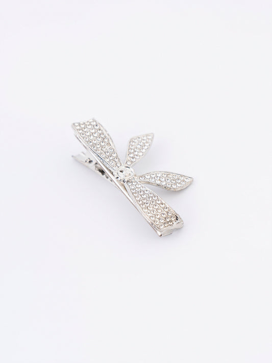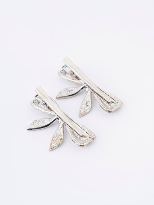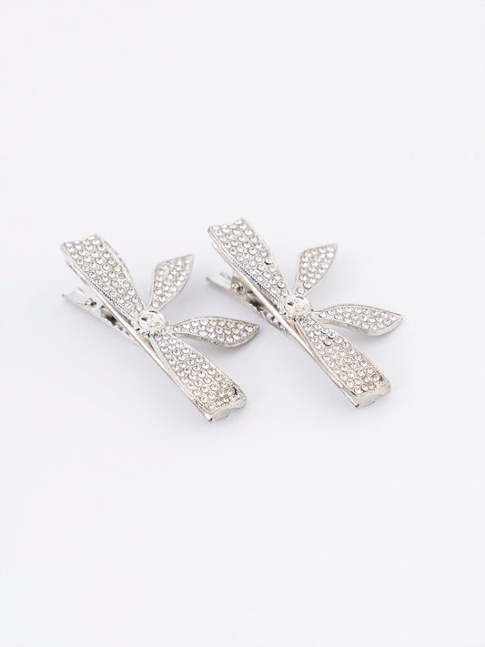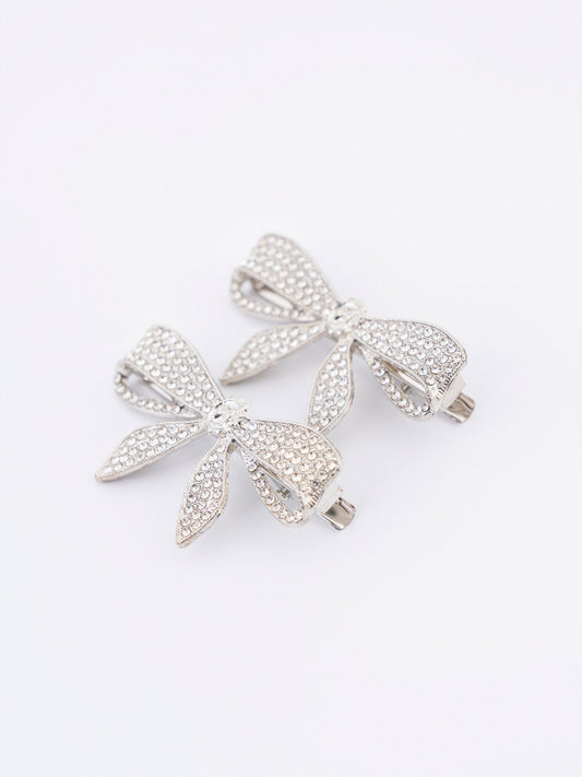 - Rhinestone embellished bow hair clips with snap closure