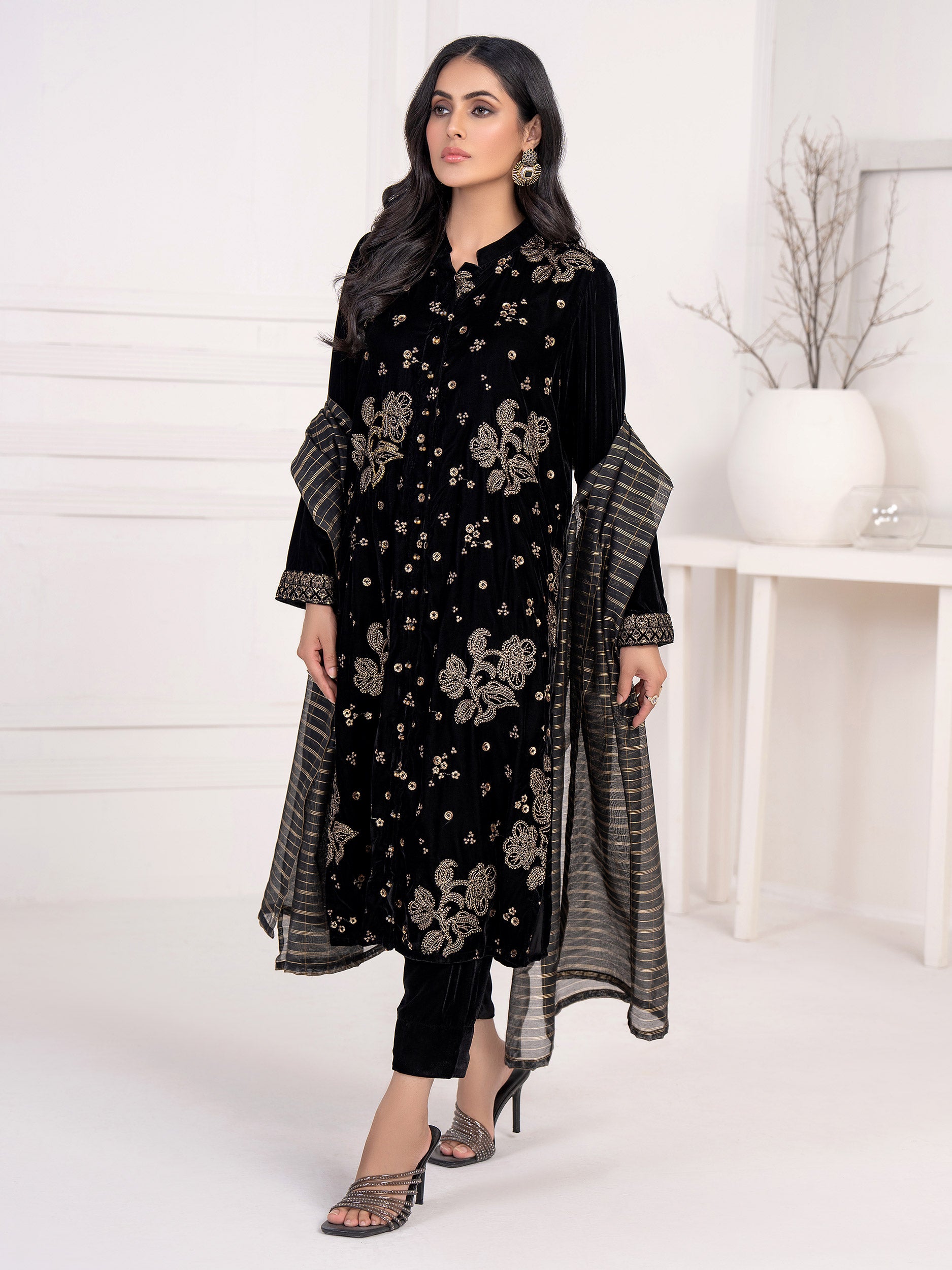 3 Piece Velvet Suit-Embroidered(Unstitched)