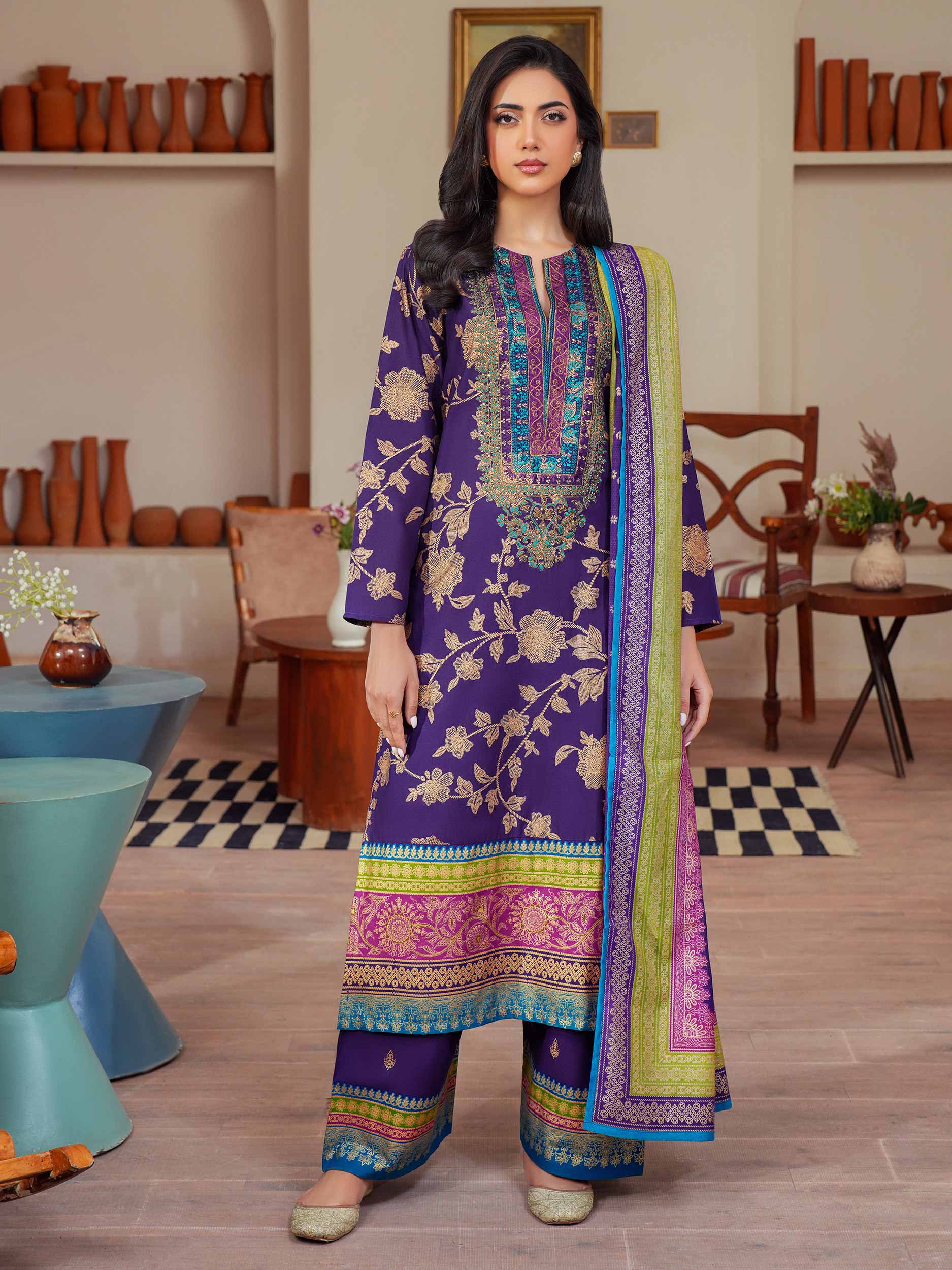 3 Piece Lawn Suit Embroidered (Unstitched)