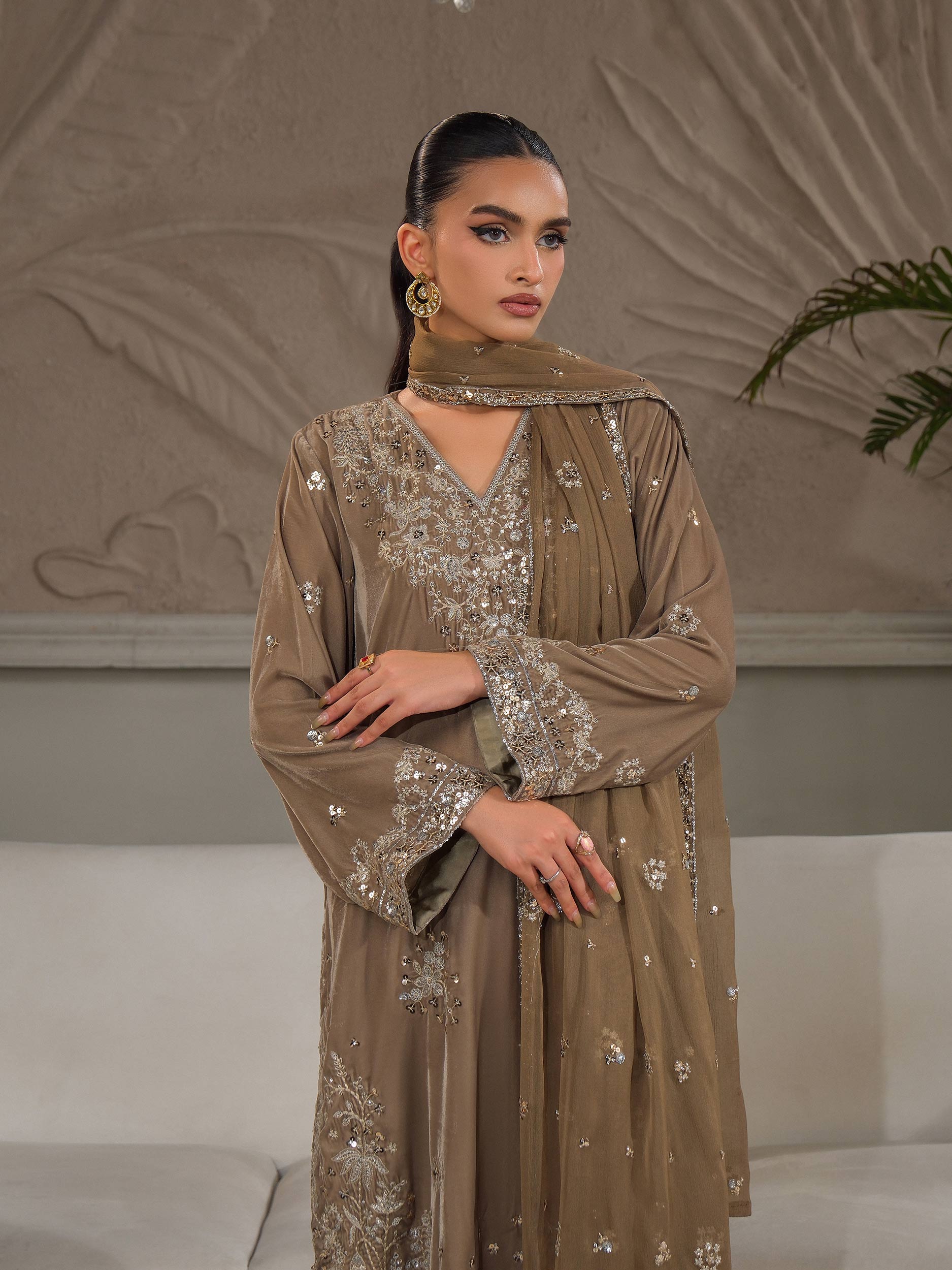 3 Piece Velvet Suit-Embroidered (Unstitched)