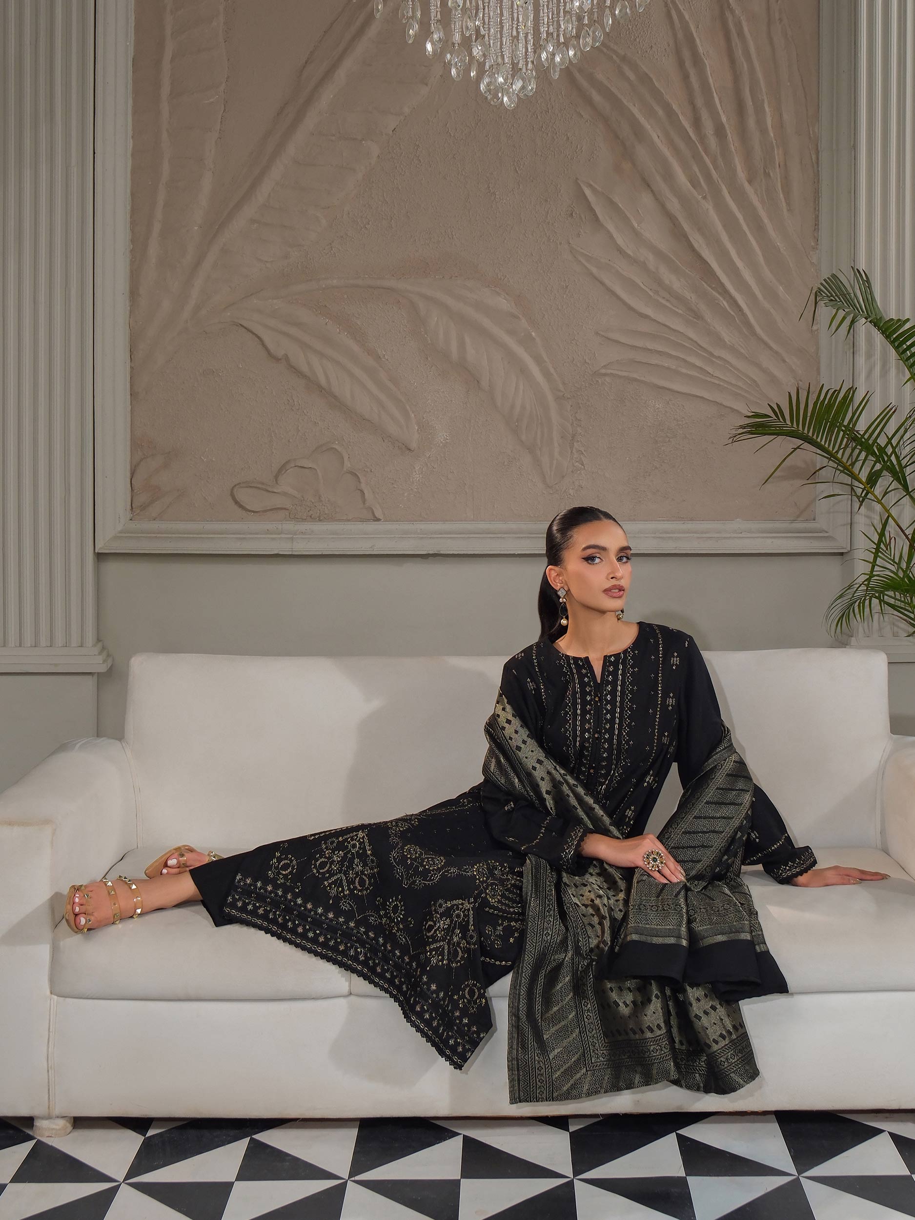 3 Piece Zari Karandi Suit-Embroidered (Unstitched)