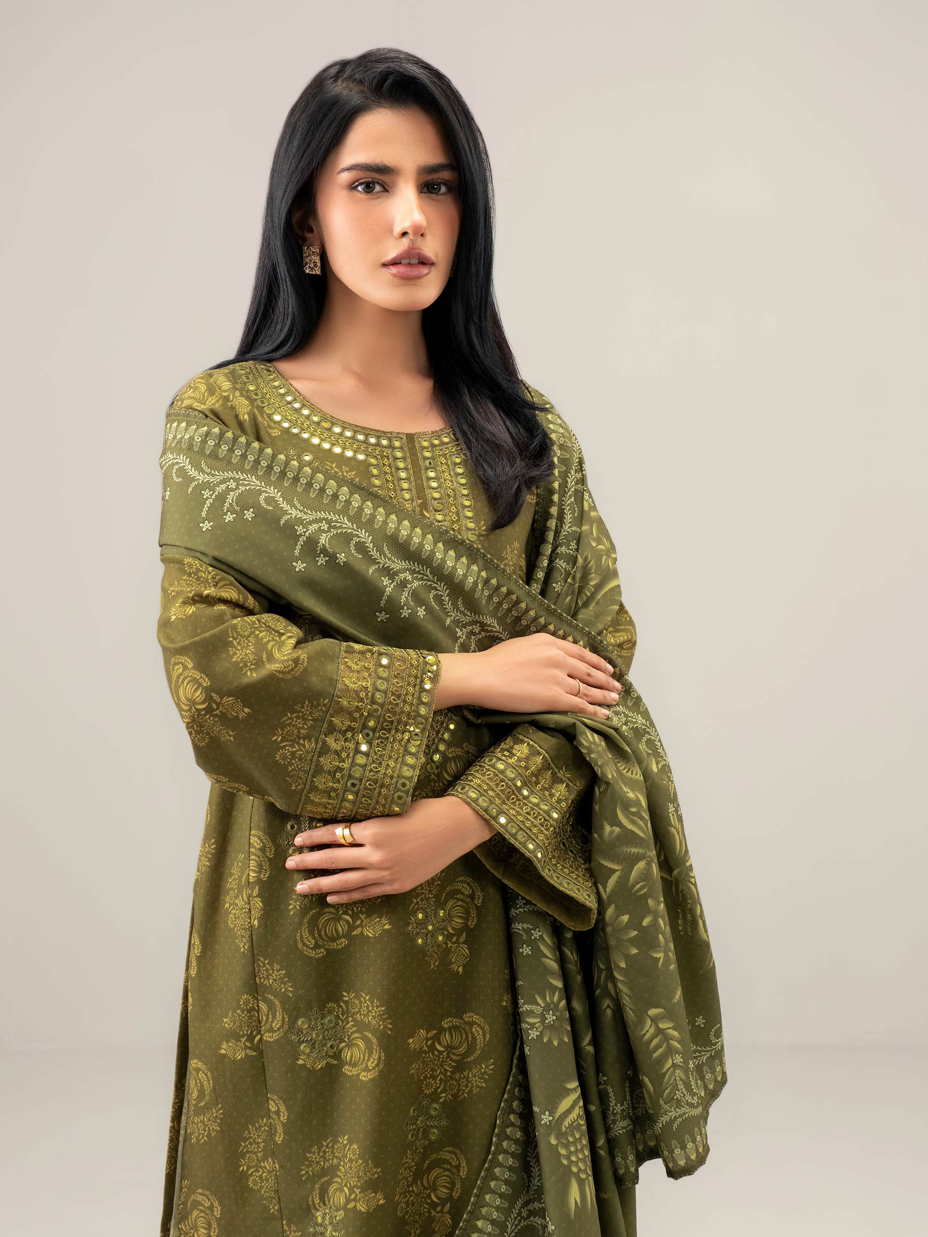 3 Piece Slub Khaddar Suit-Embroidered (Unstitched)