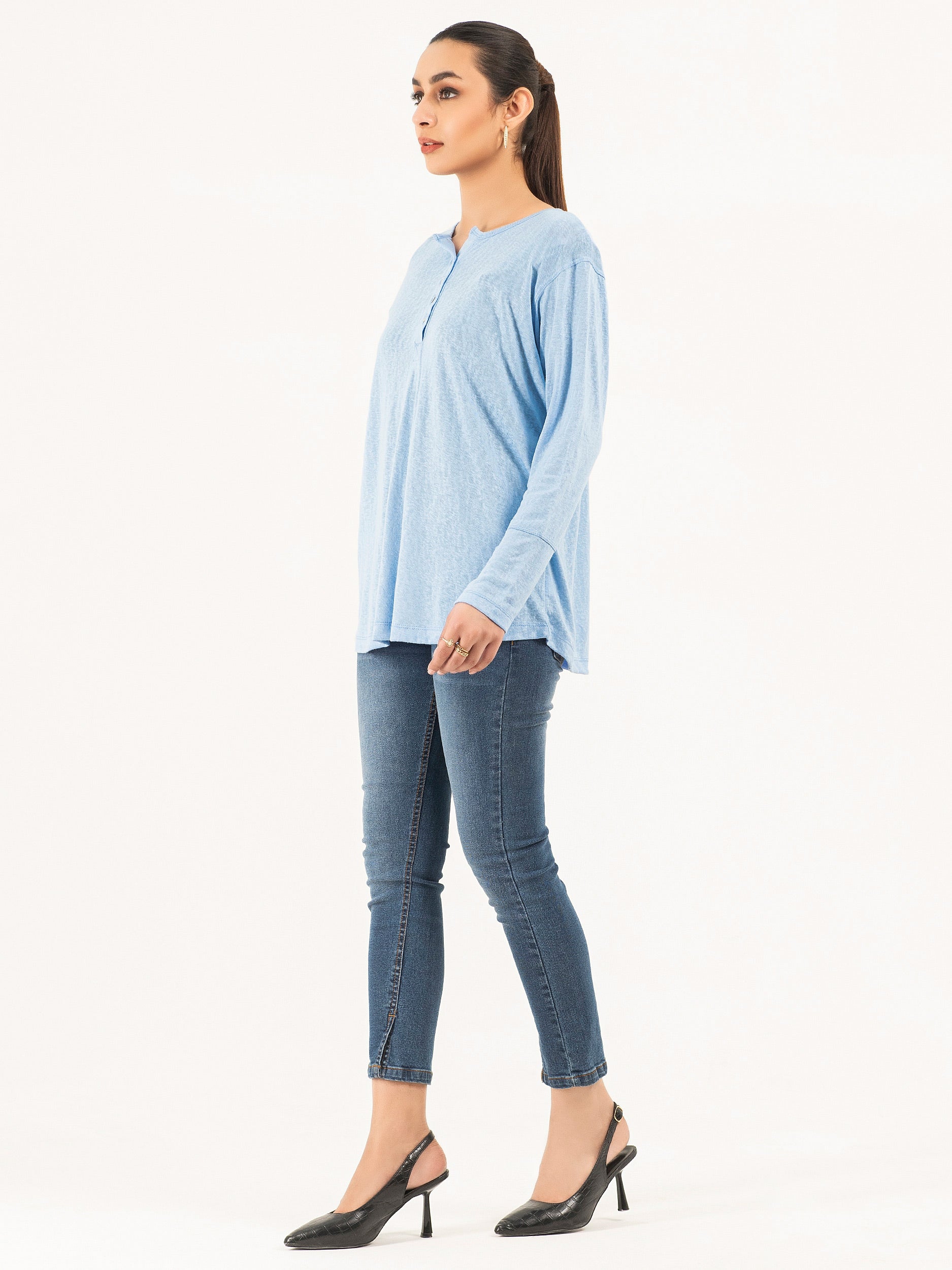 - Button closure on the placket