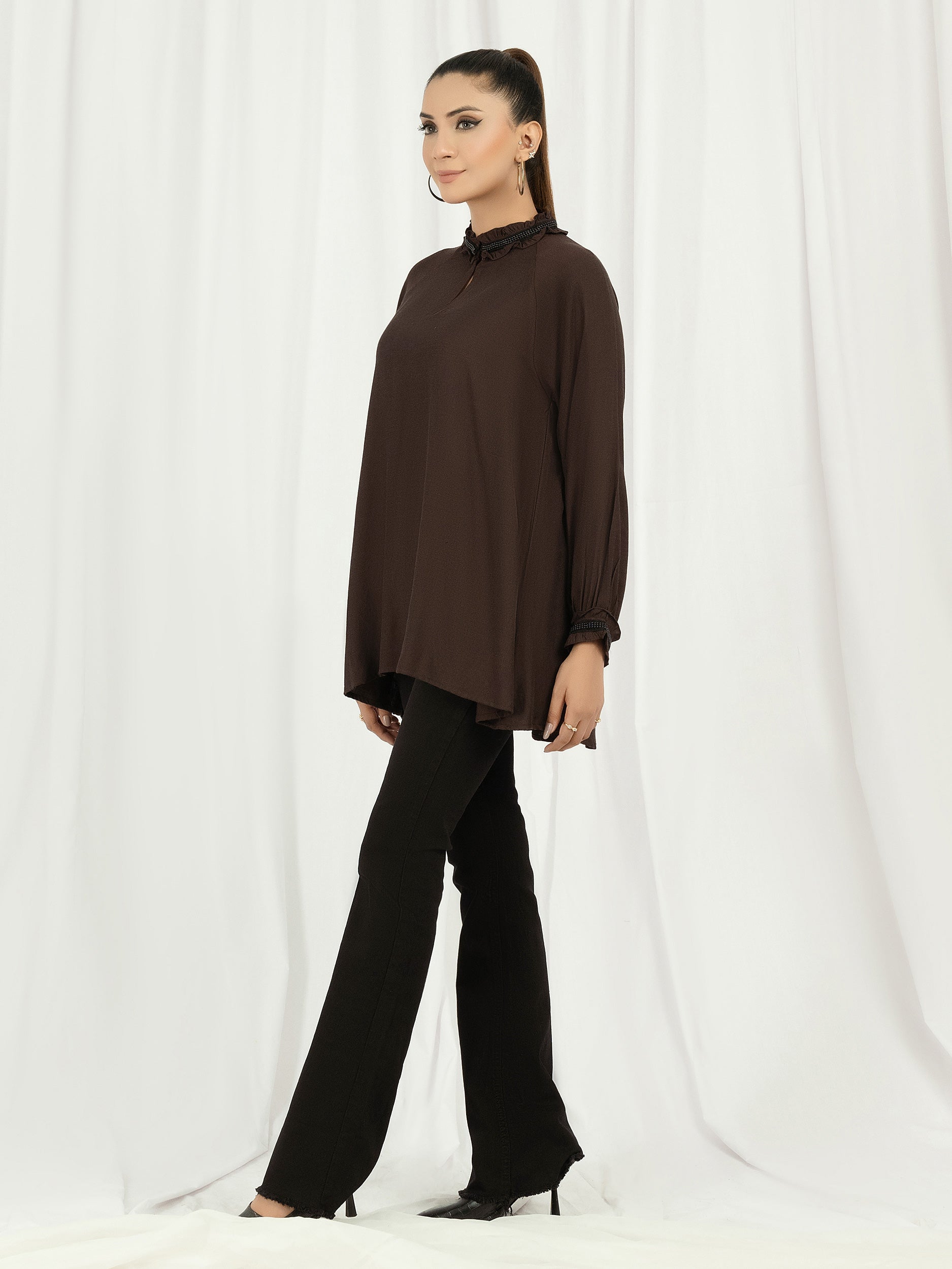 - Dyed top with bead lace detailing on the neckline and pleated cuffs