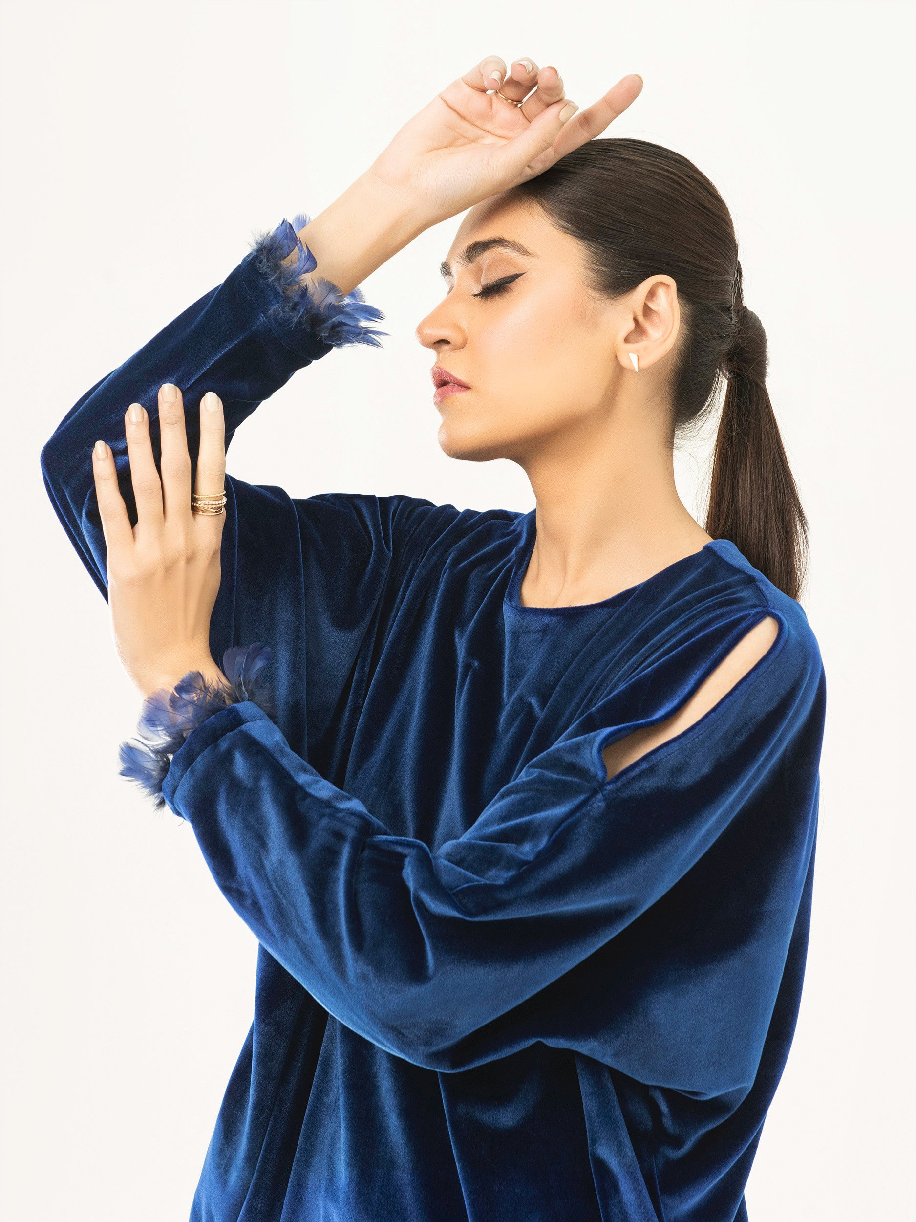 - Feather detailing on the cuffs