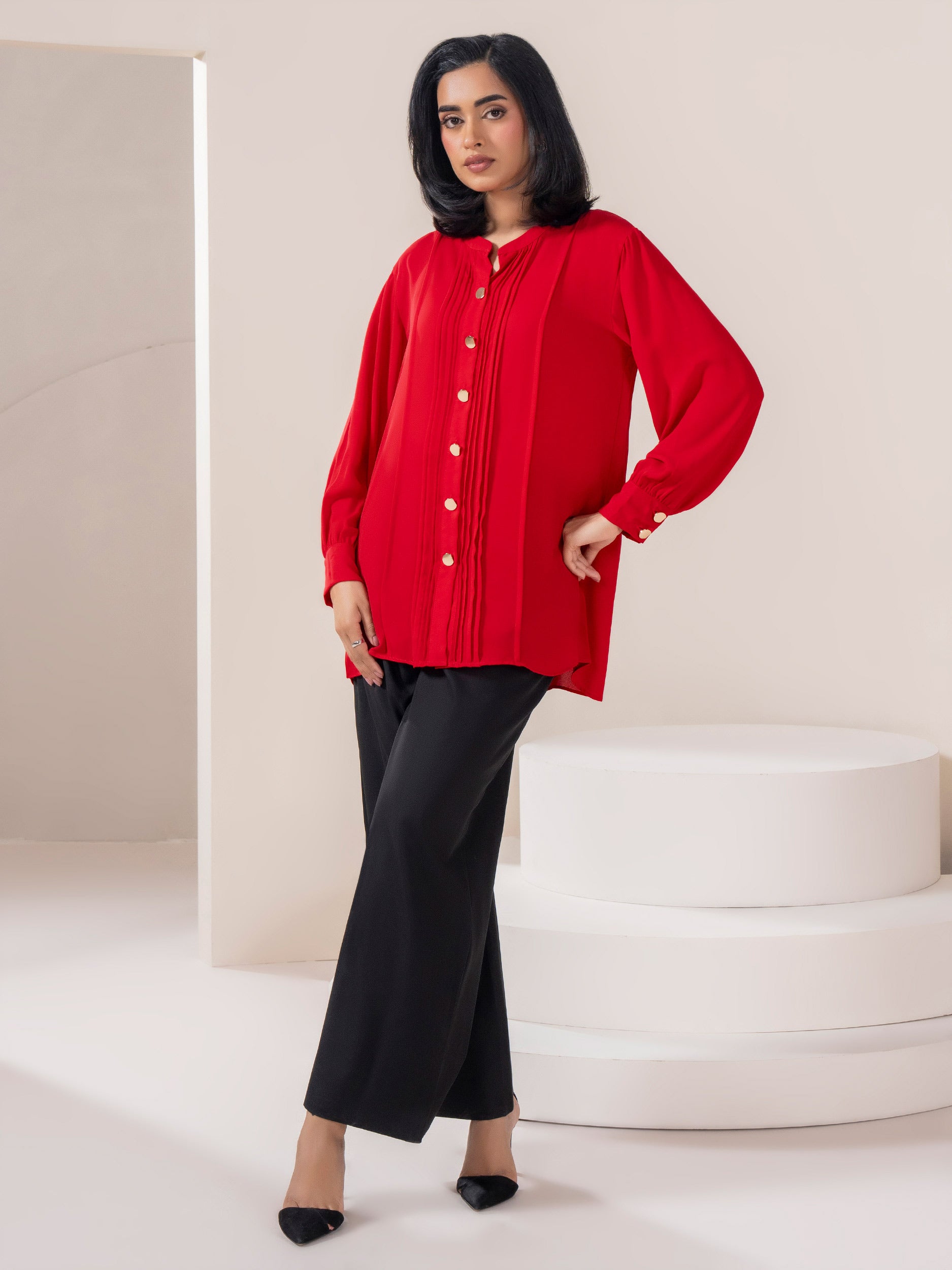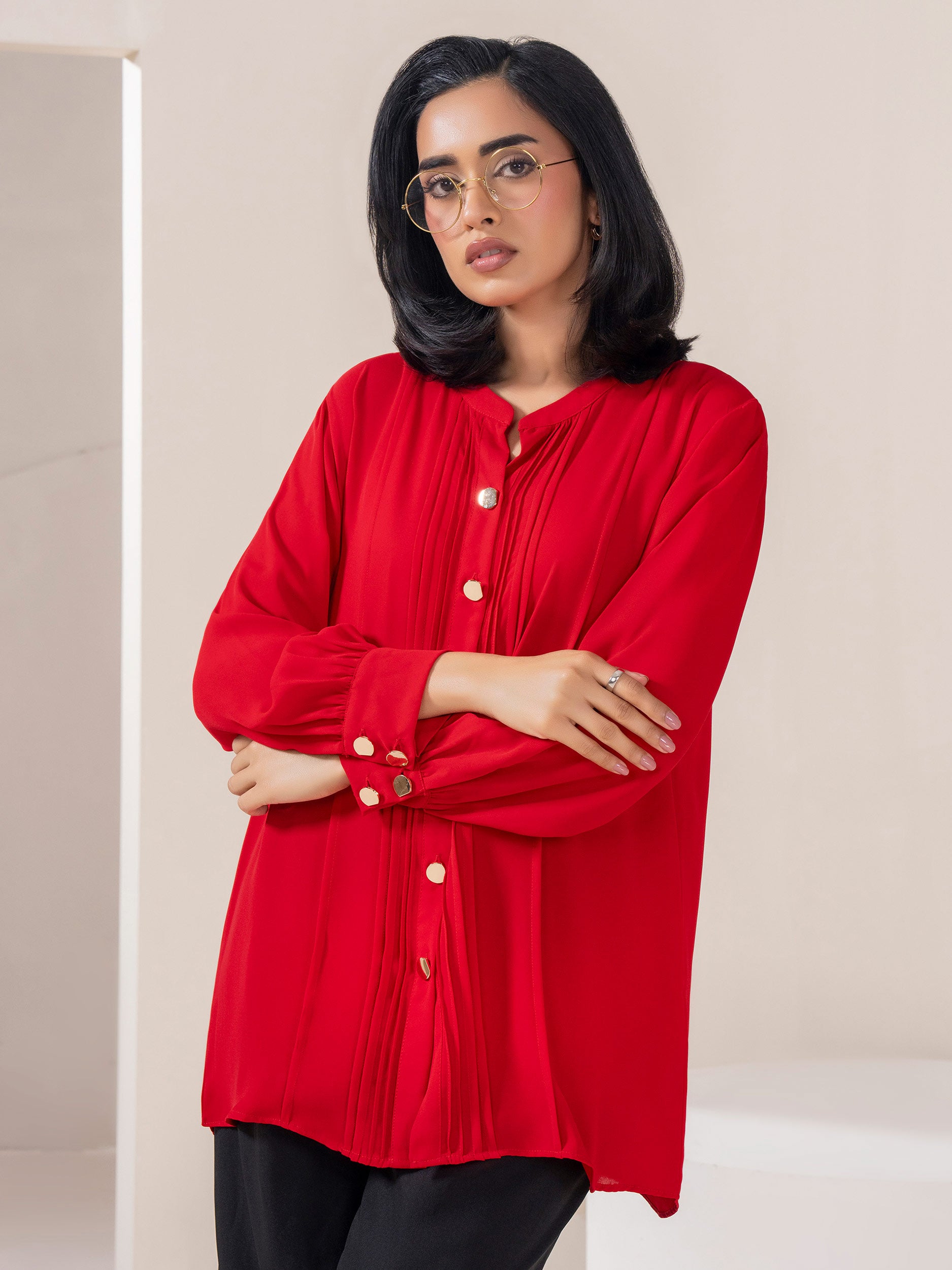 - Dyed button down top