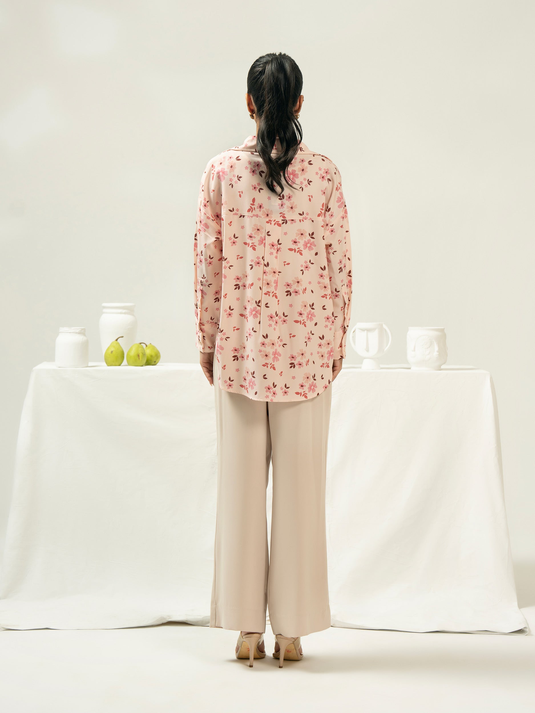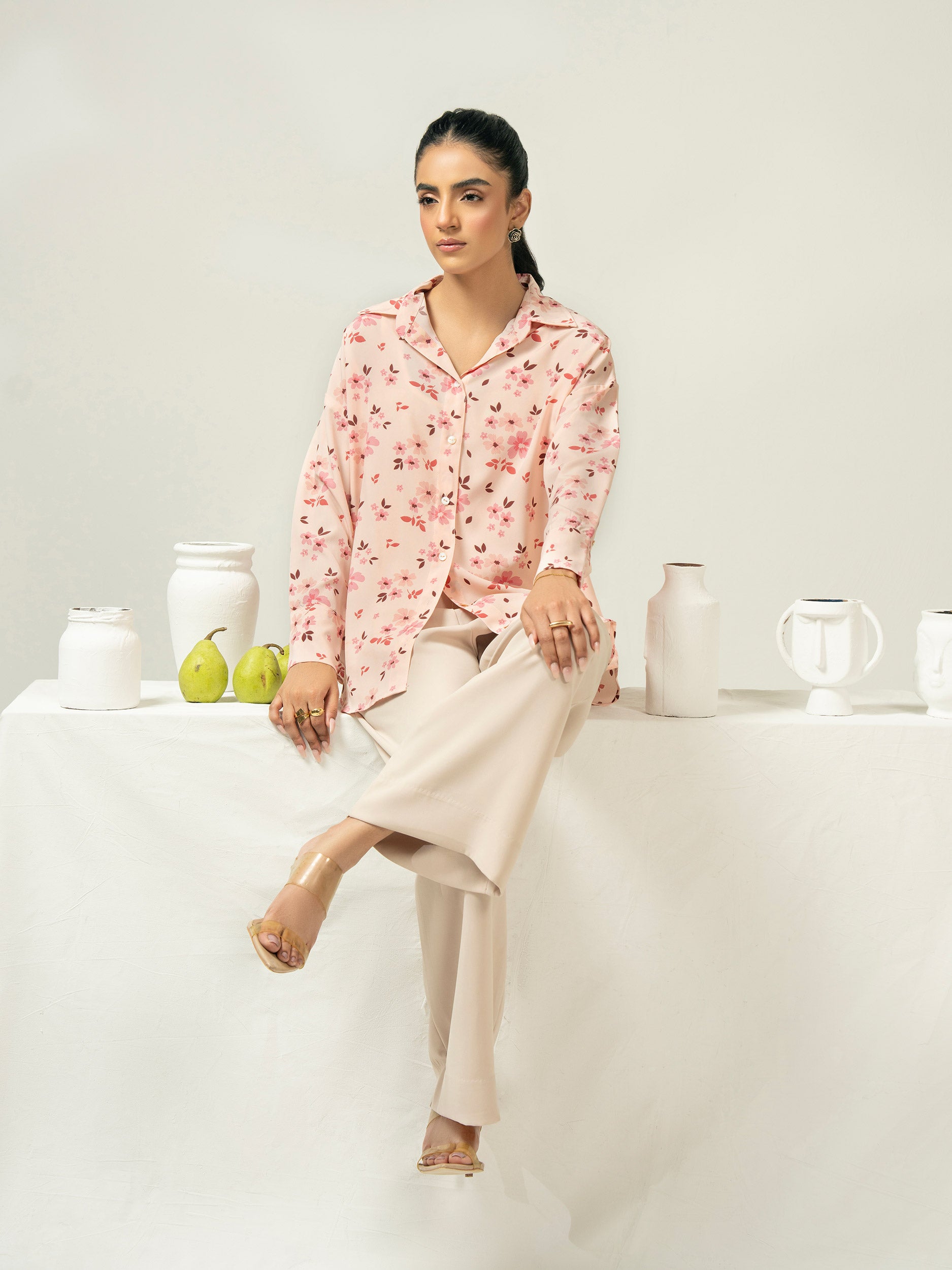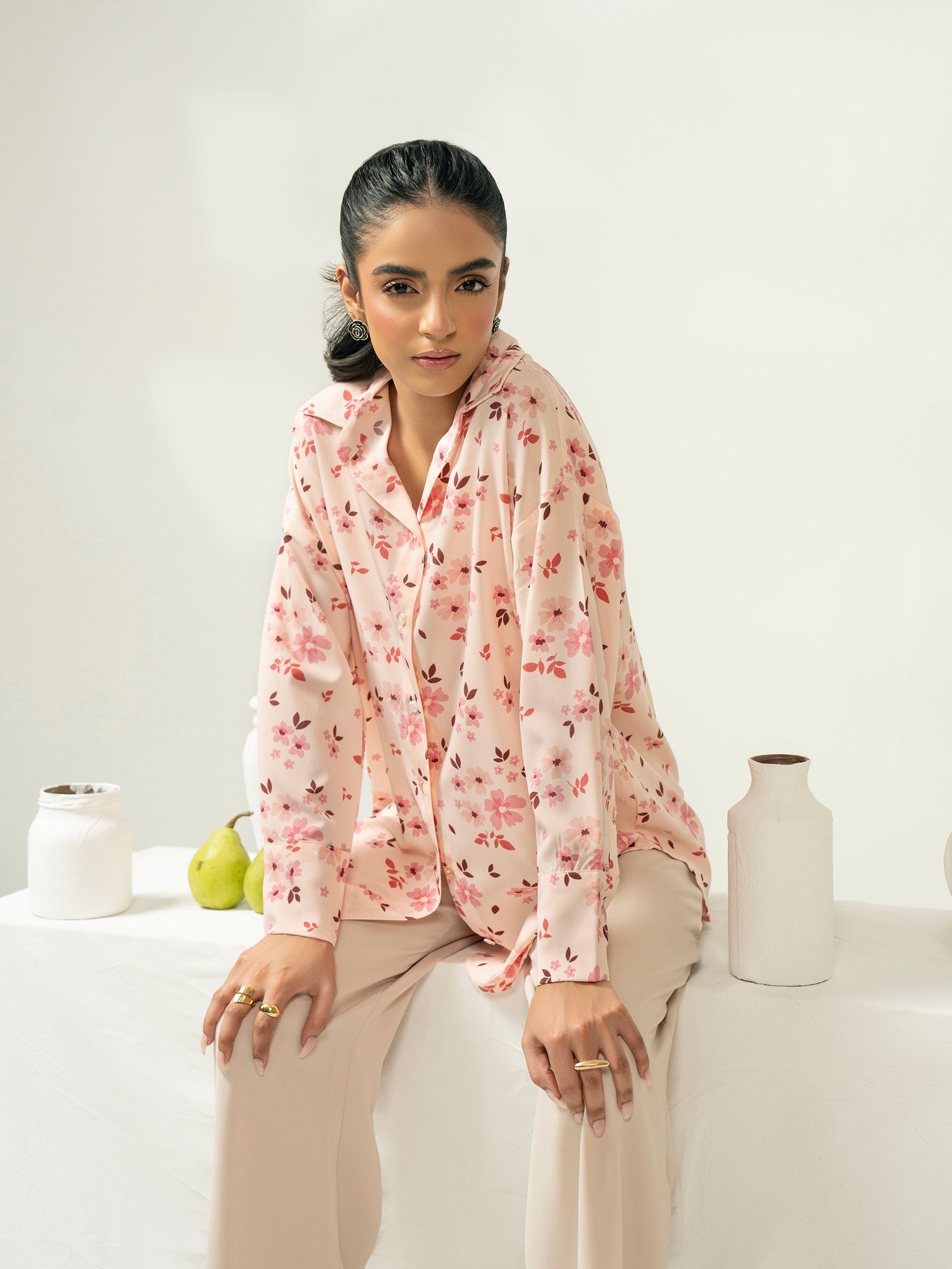 - Printed button down top