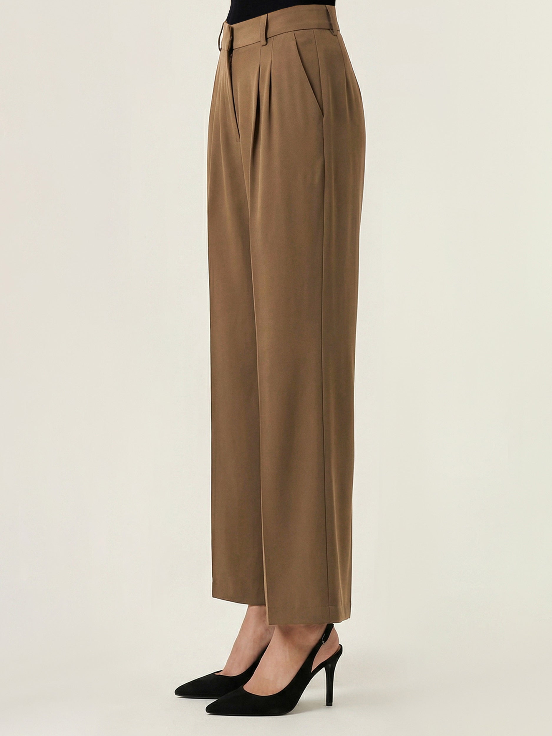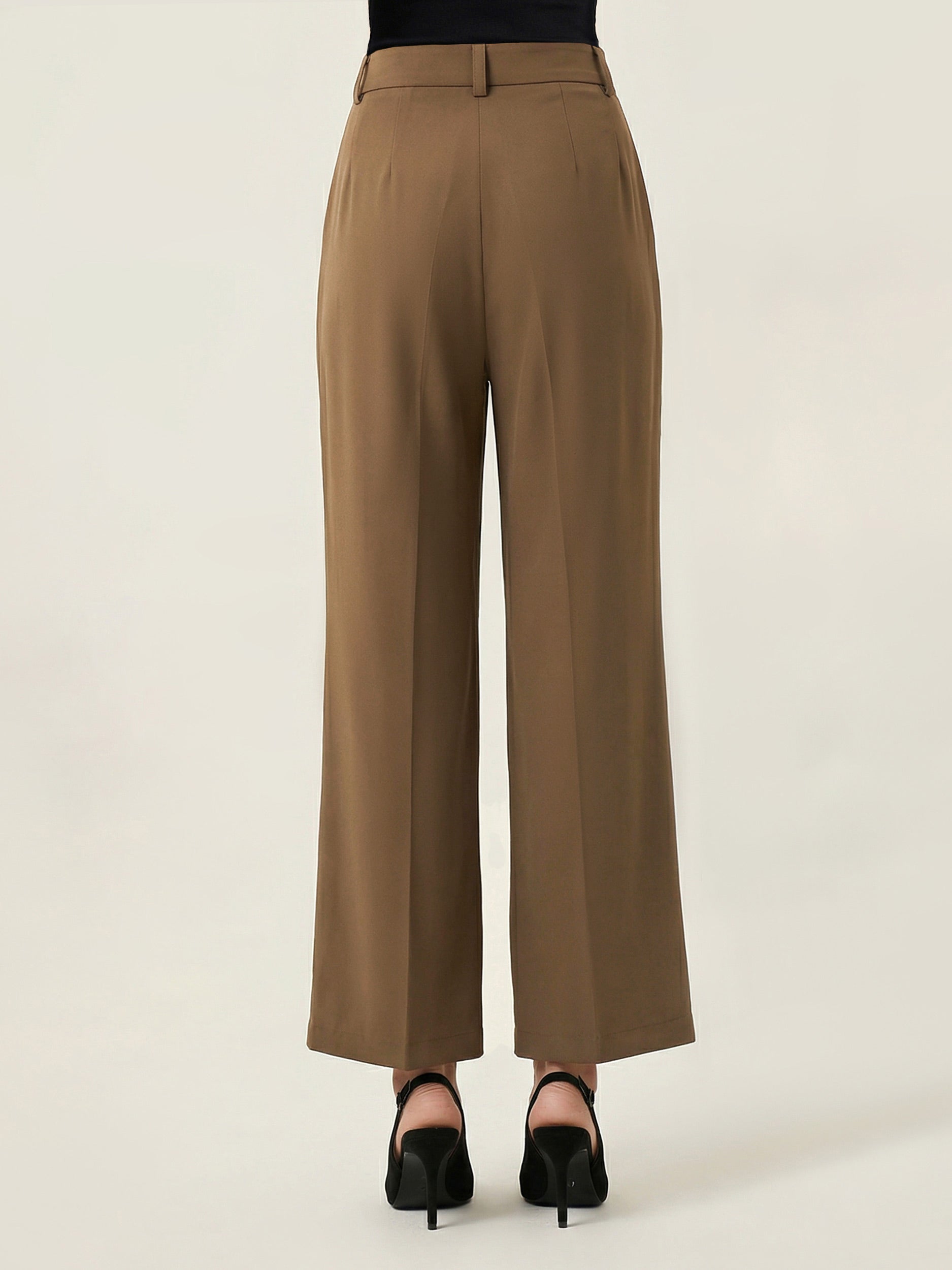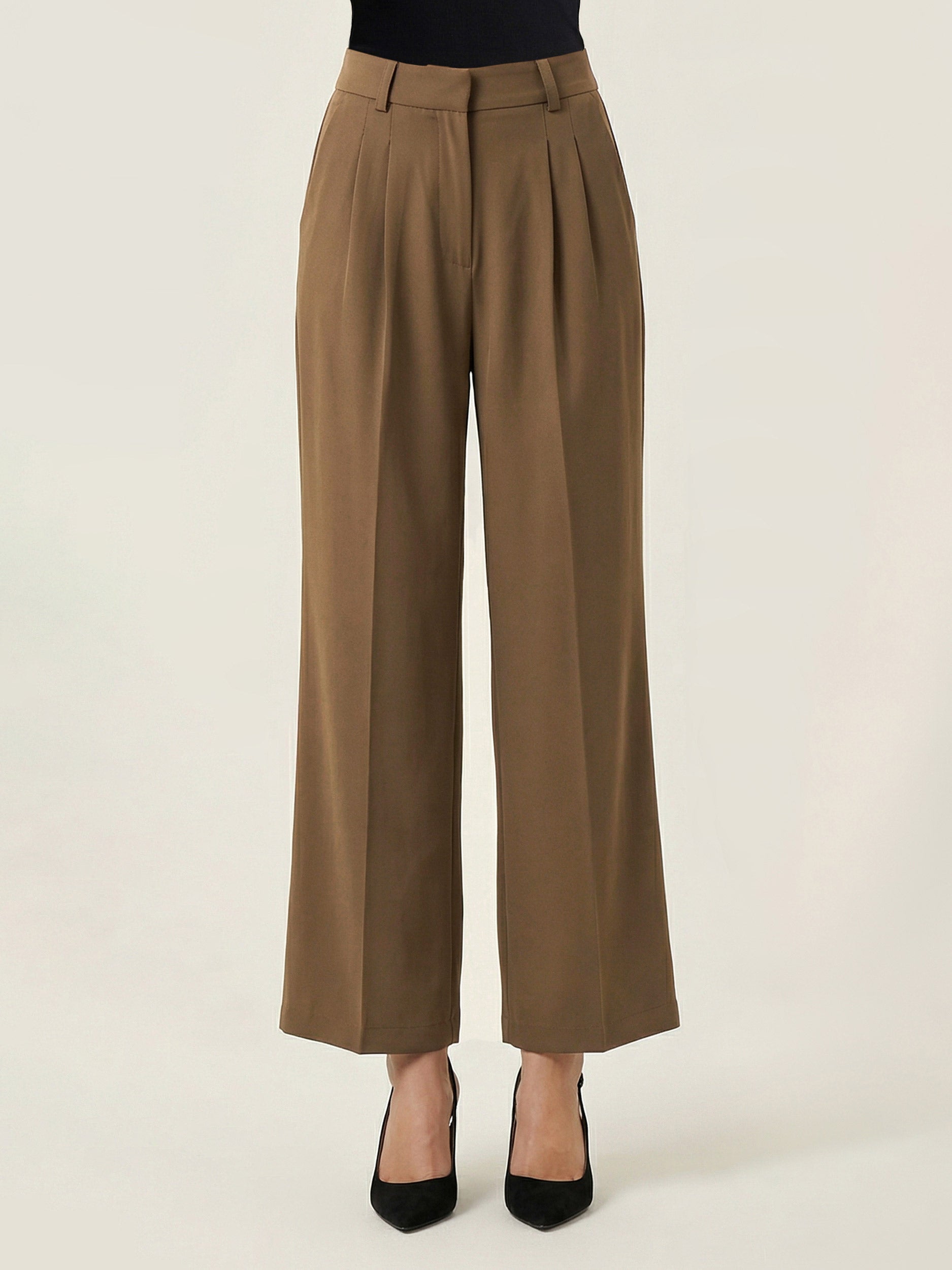 - High-waisted formal wide-leg pants with front pleats and a straight-leg fit, finished with a front zip closure